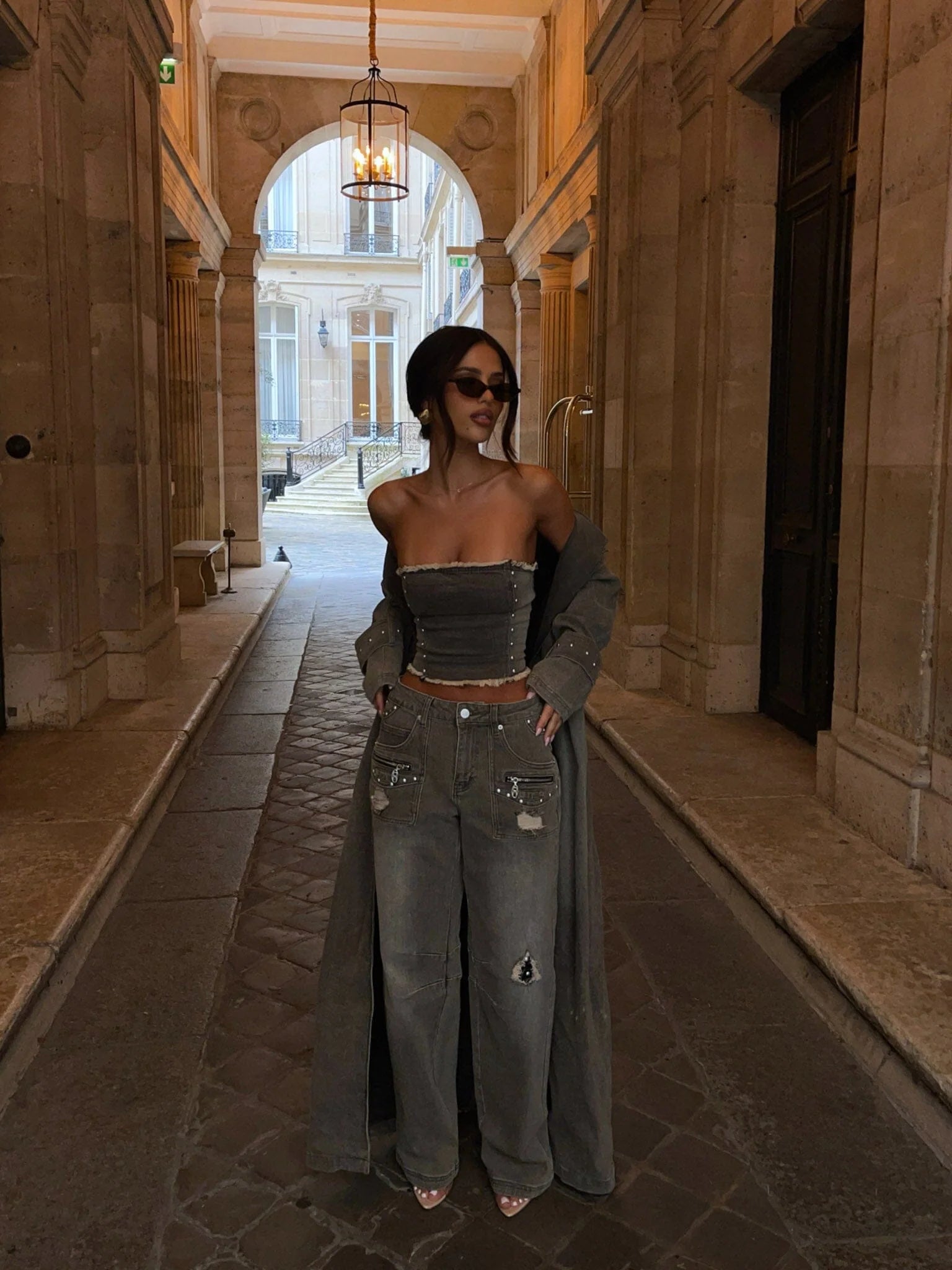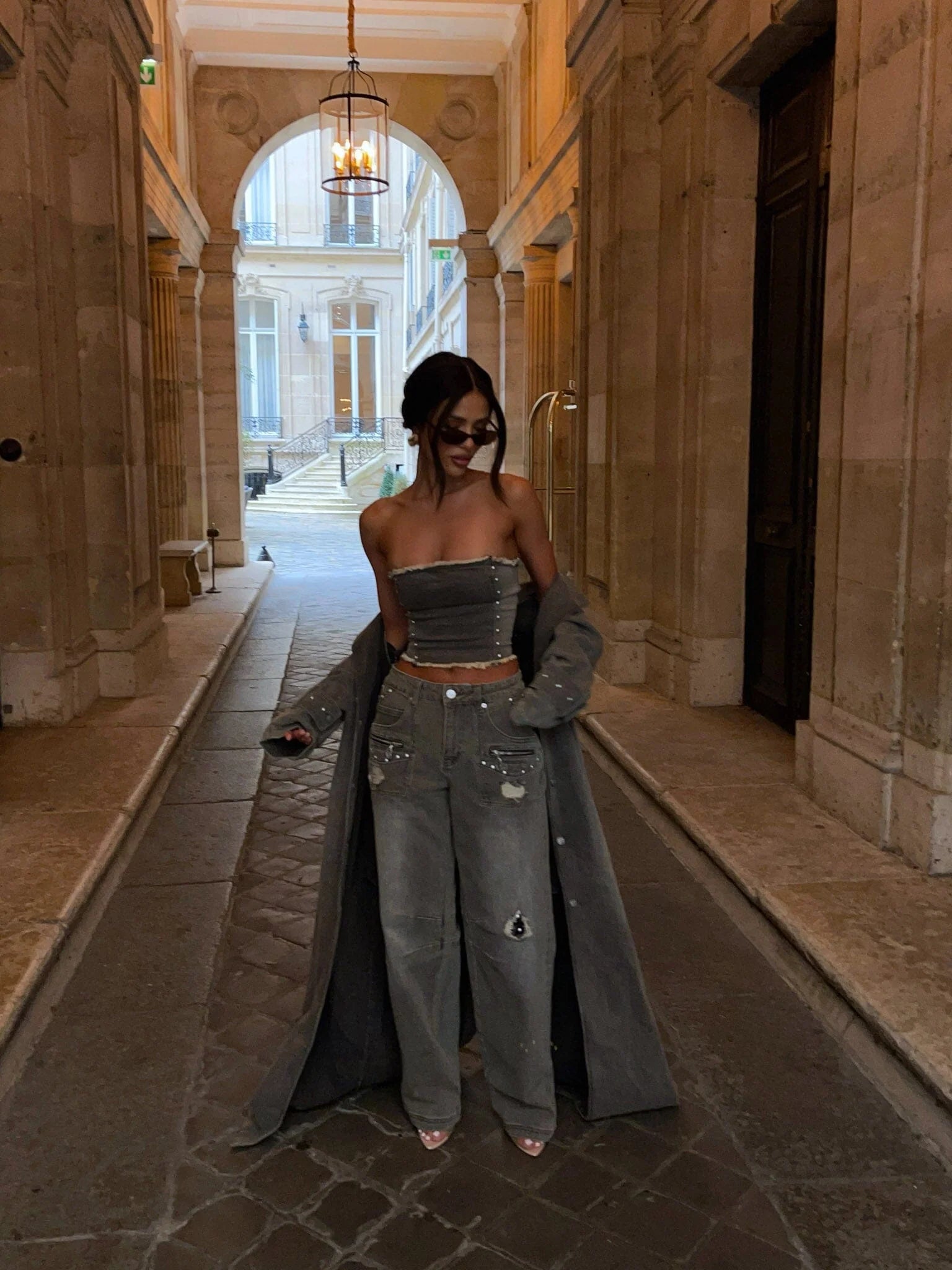 Style these jeans with the matching 'Hendra Bralette' and 'Hendra Jacket' for a head-to-toe denim ensemble. Add chunky boots and bold accessories for a street-style finish that turns heads everywhere you go.