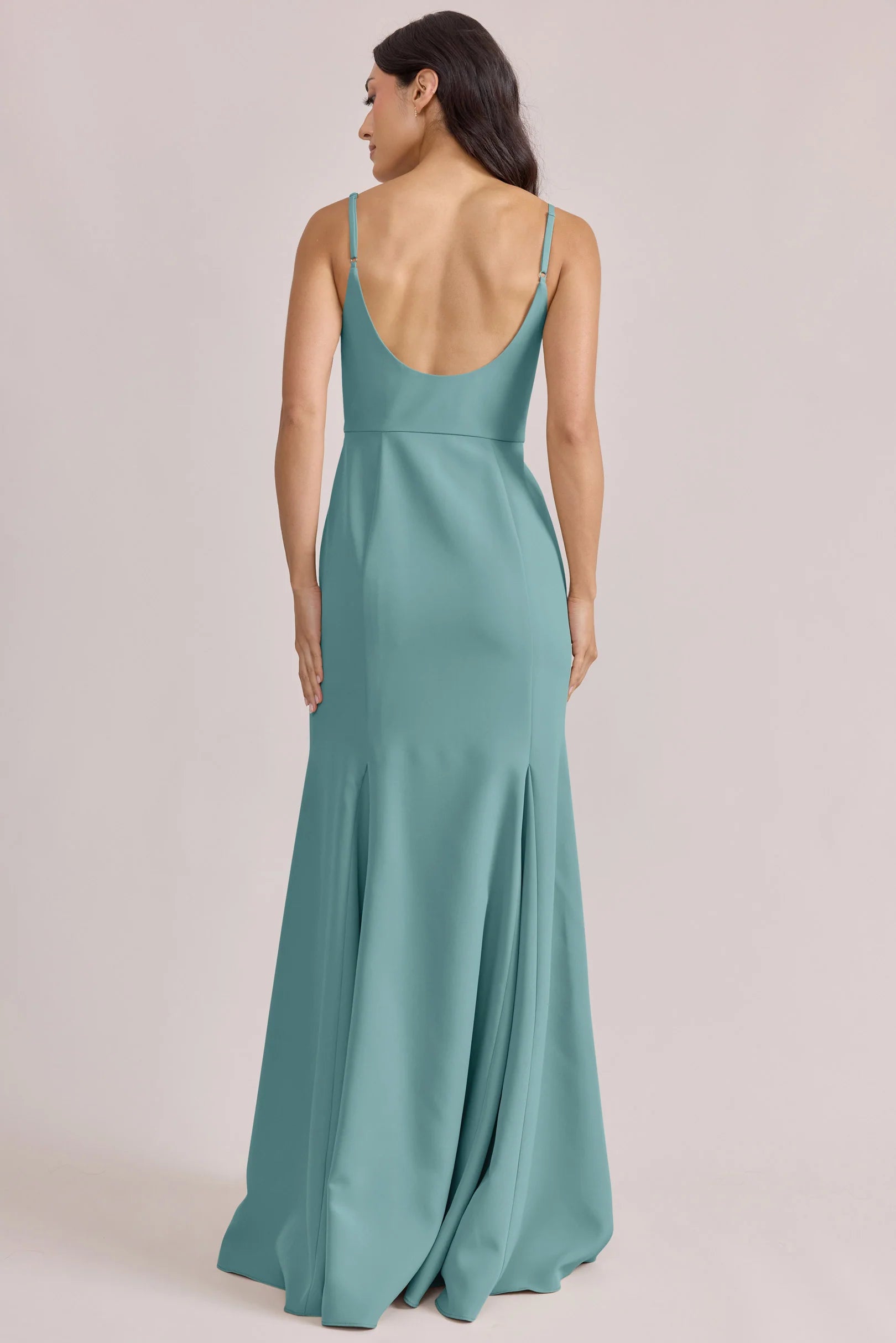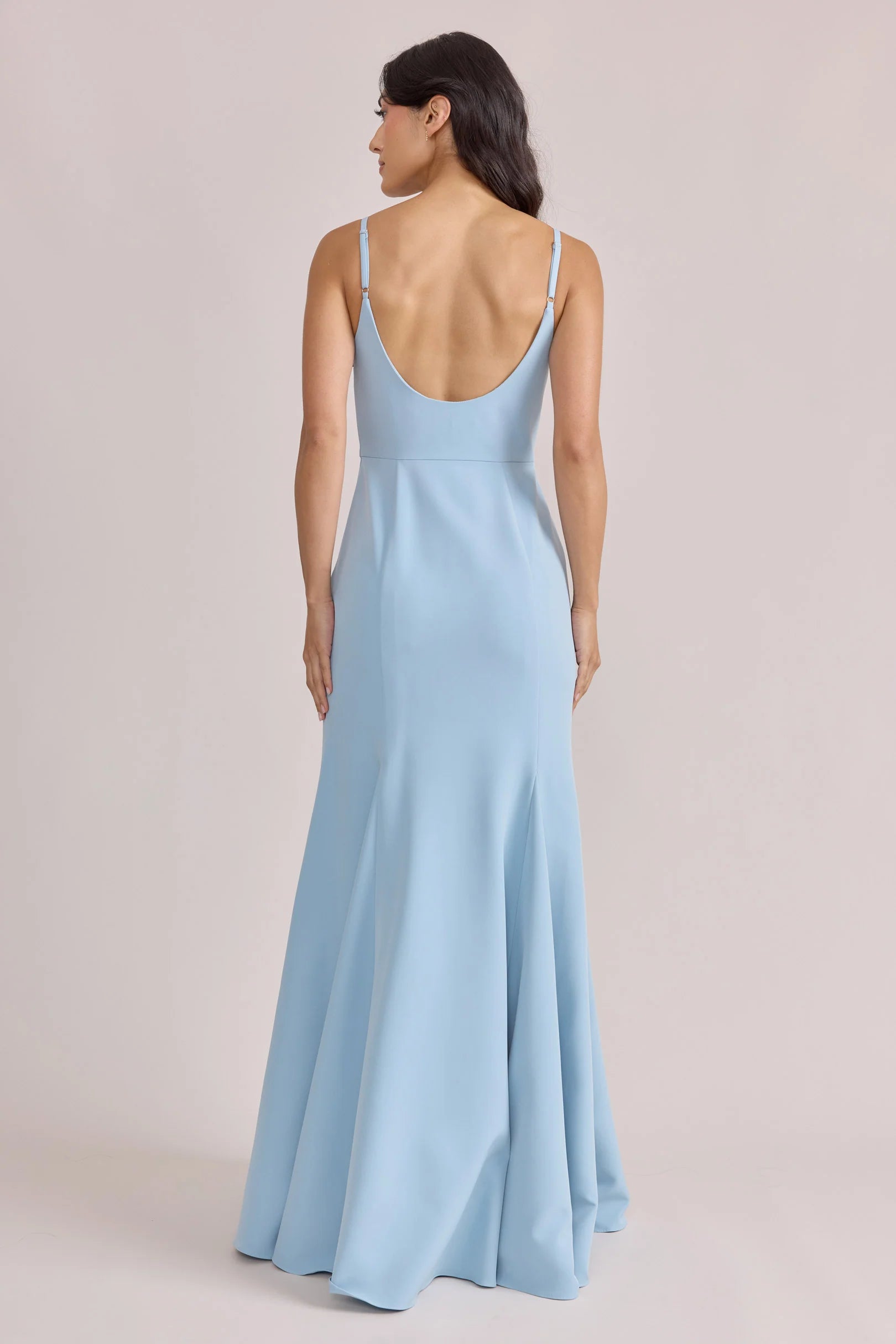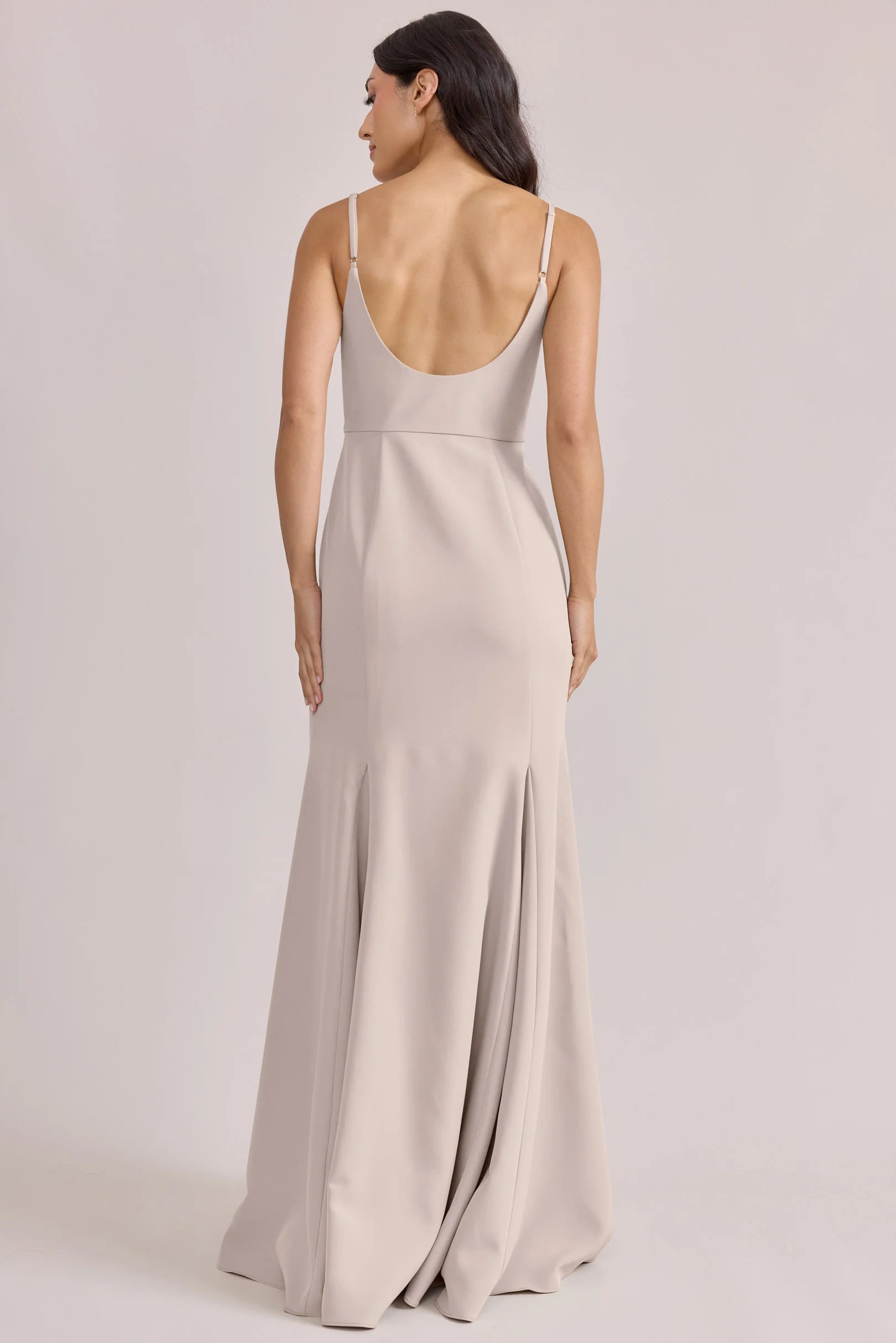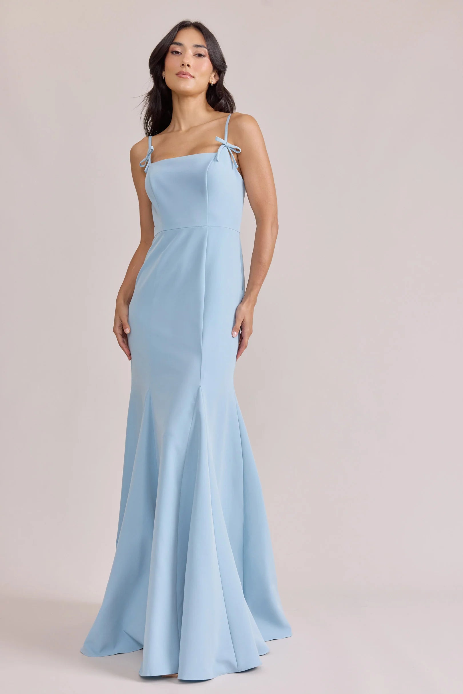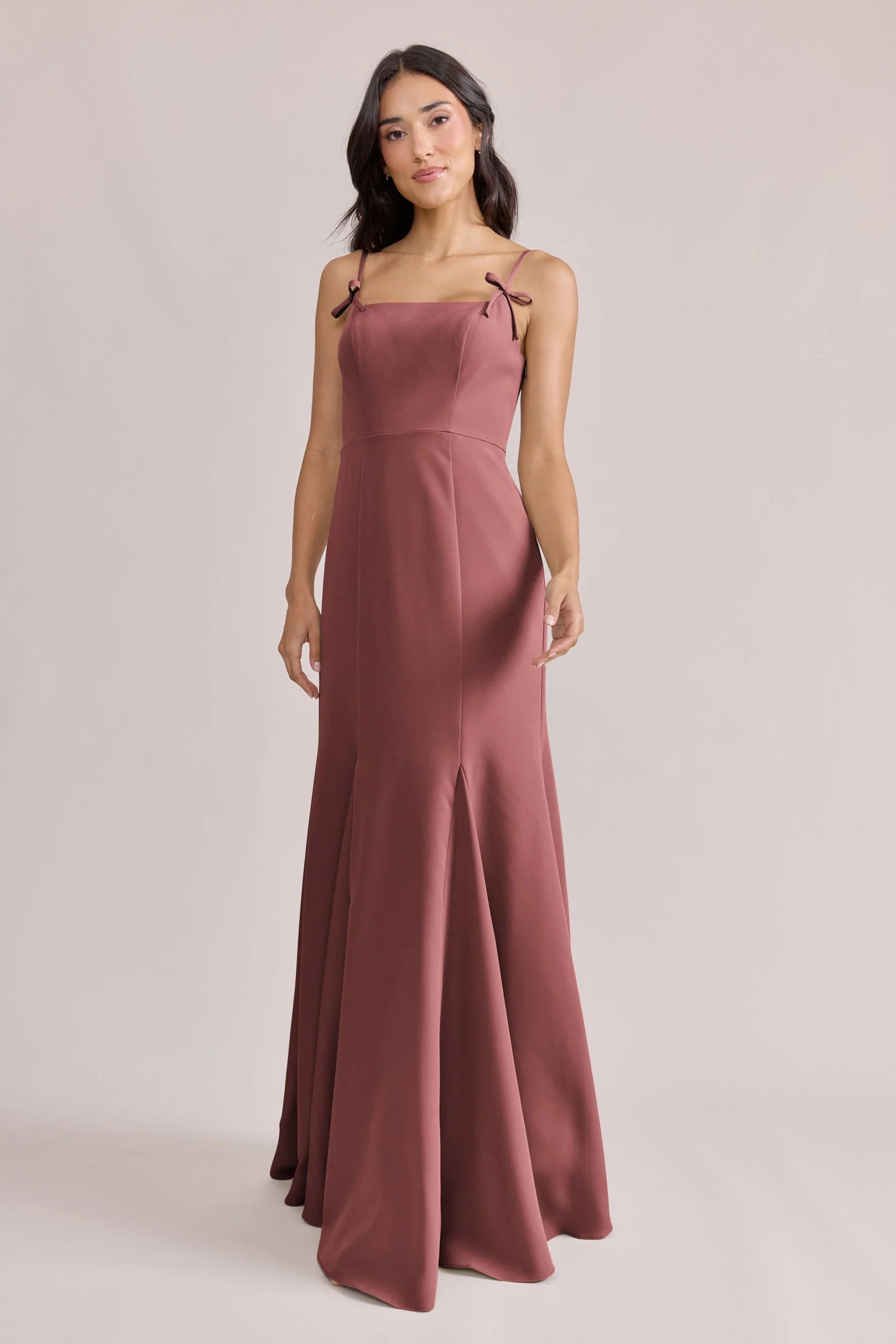A stunning square neckline, the Jolie is the epitome of chic. The Jolie Crepe dress features a crepe bow that rests on each strap, fitted silhouette, low back, finished with a flowing godet skirt. Pair with our Colette Crepe dress for a charming line-up!