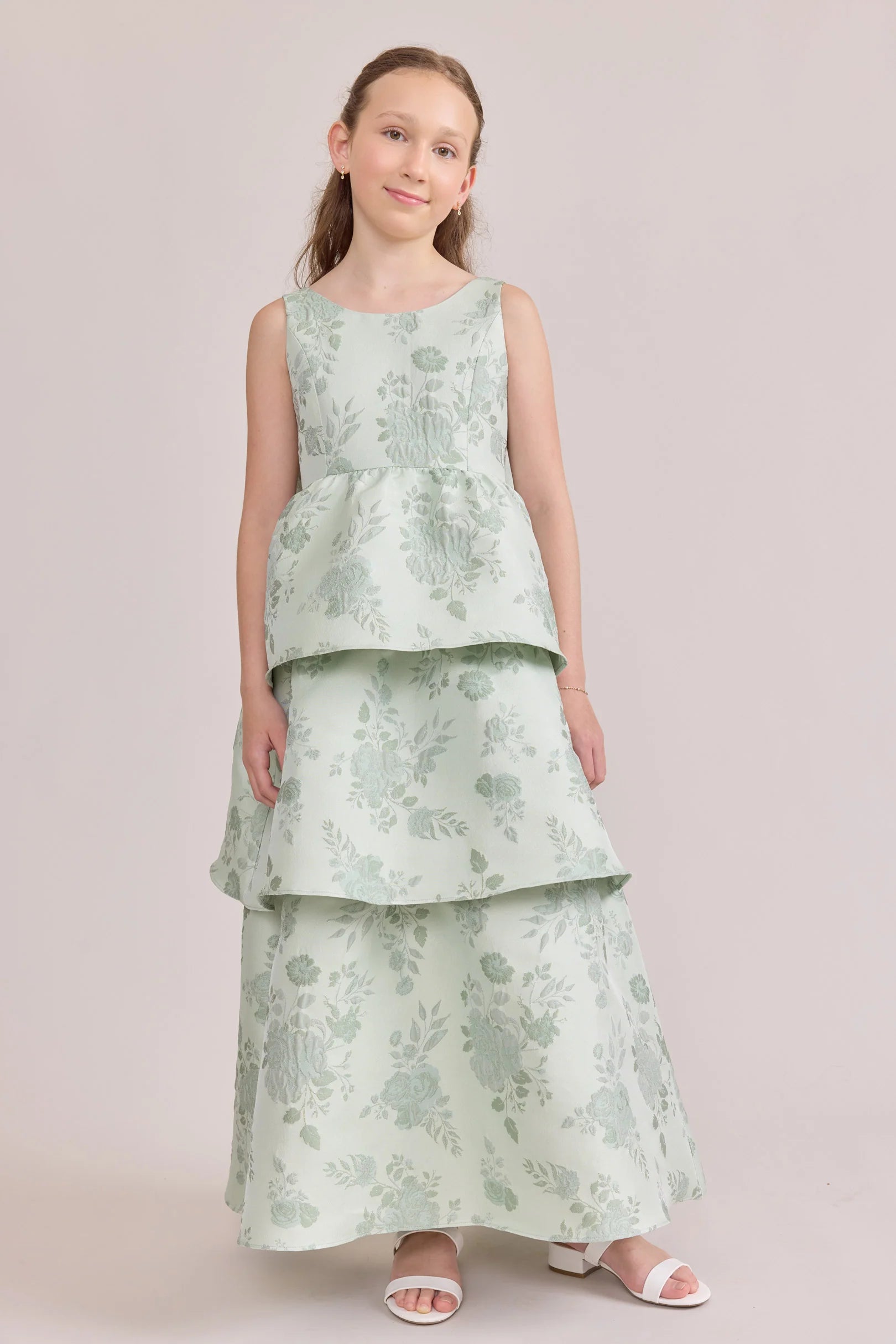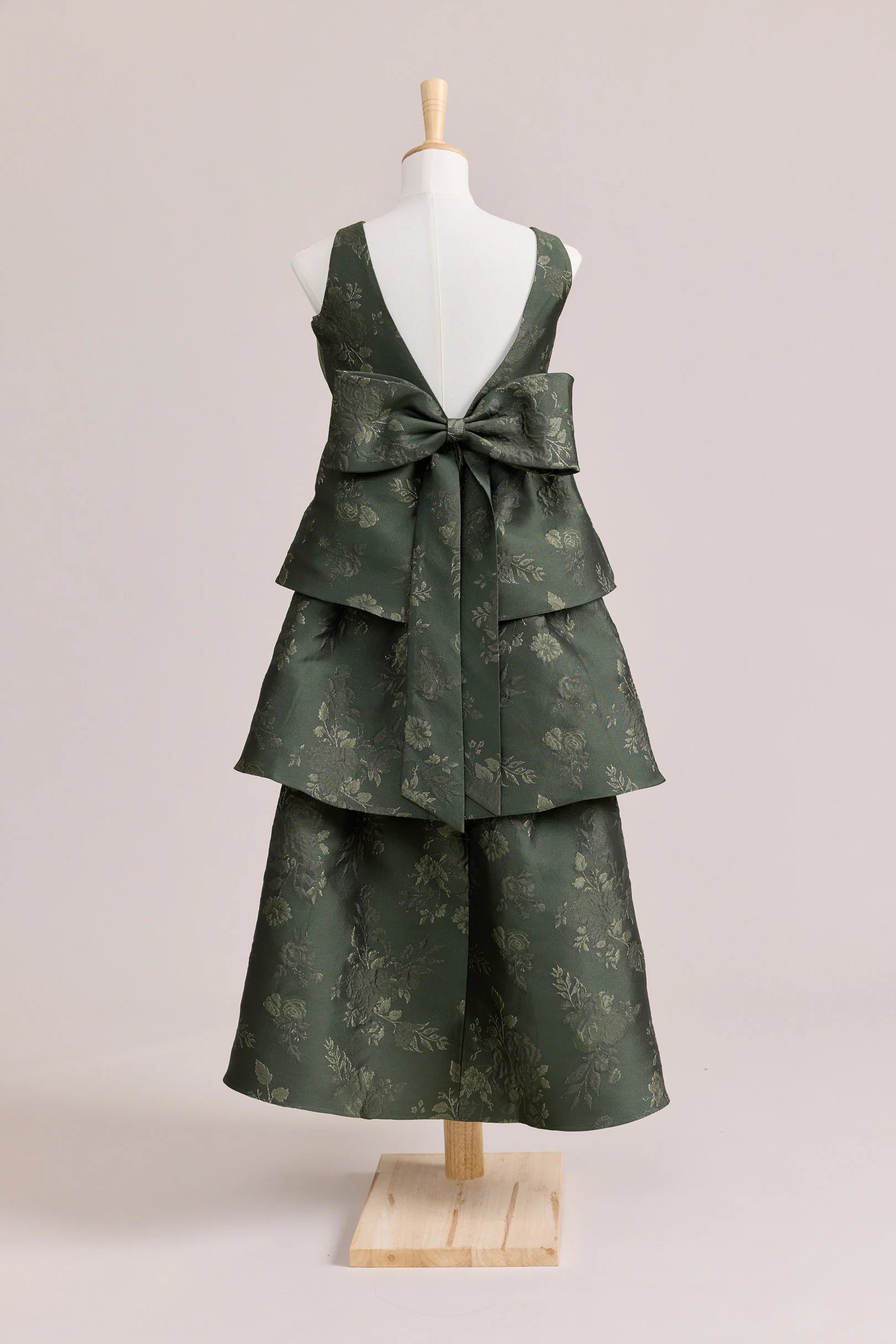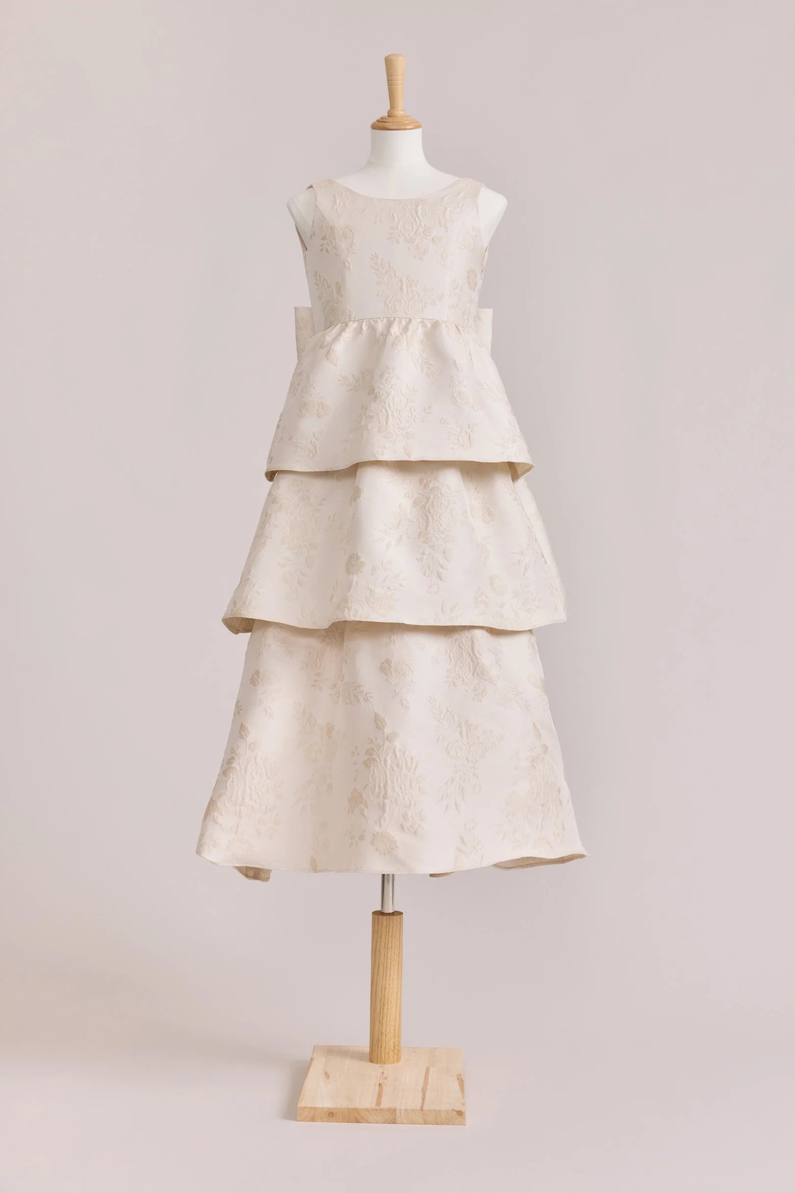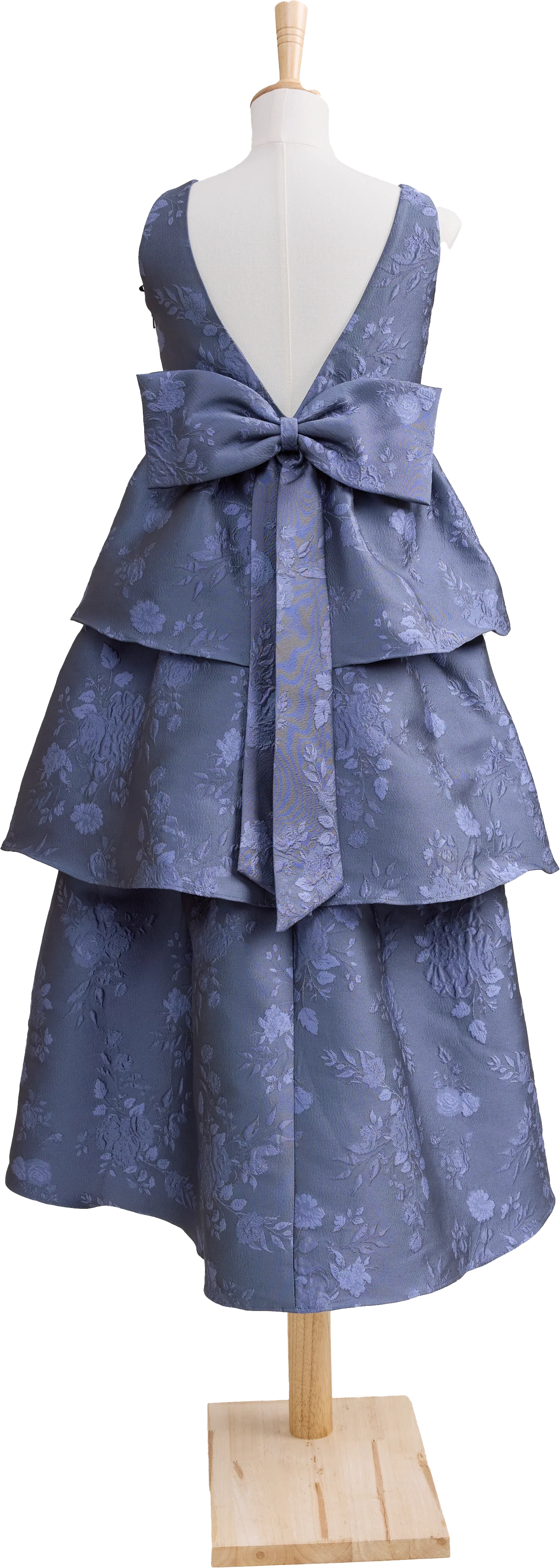 A ruffle-tiered dream in textured jacquard, our Dress is perfect for your Junior Bridesmaid to make a subtle yet stunning statement. The modest neckline offers a classic touch, while the low V-back and oversized bow bring the charm. Designed to beautifully complement our jacquard or solid bridesmaid styles.