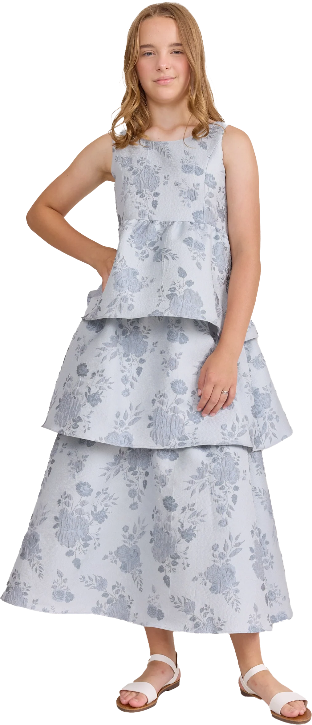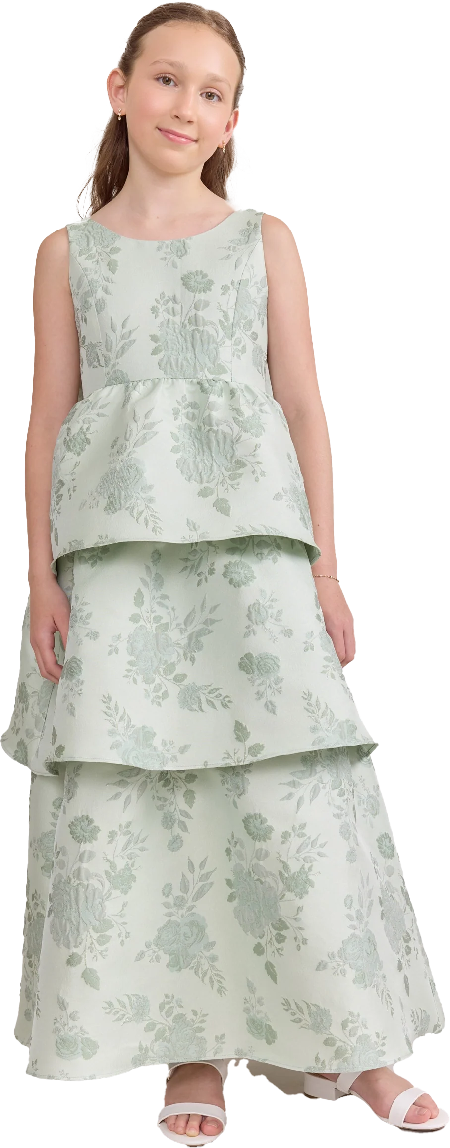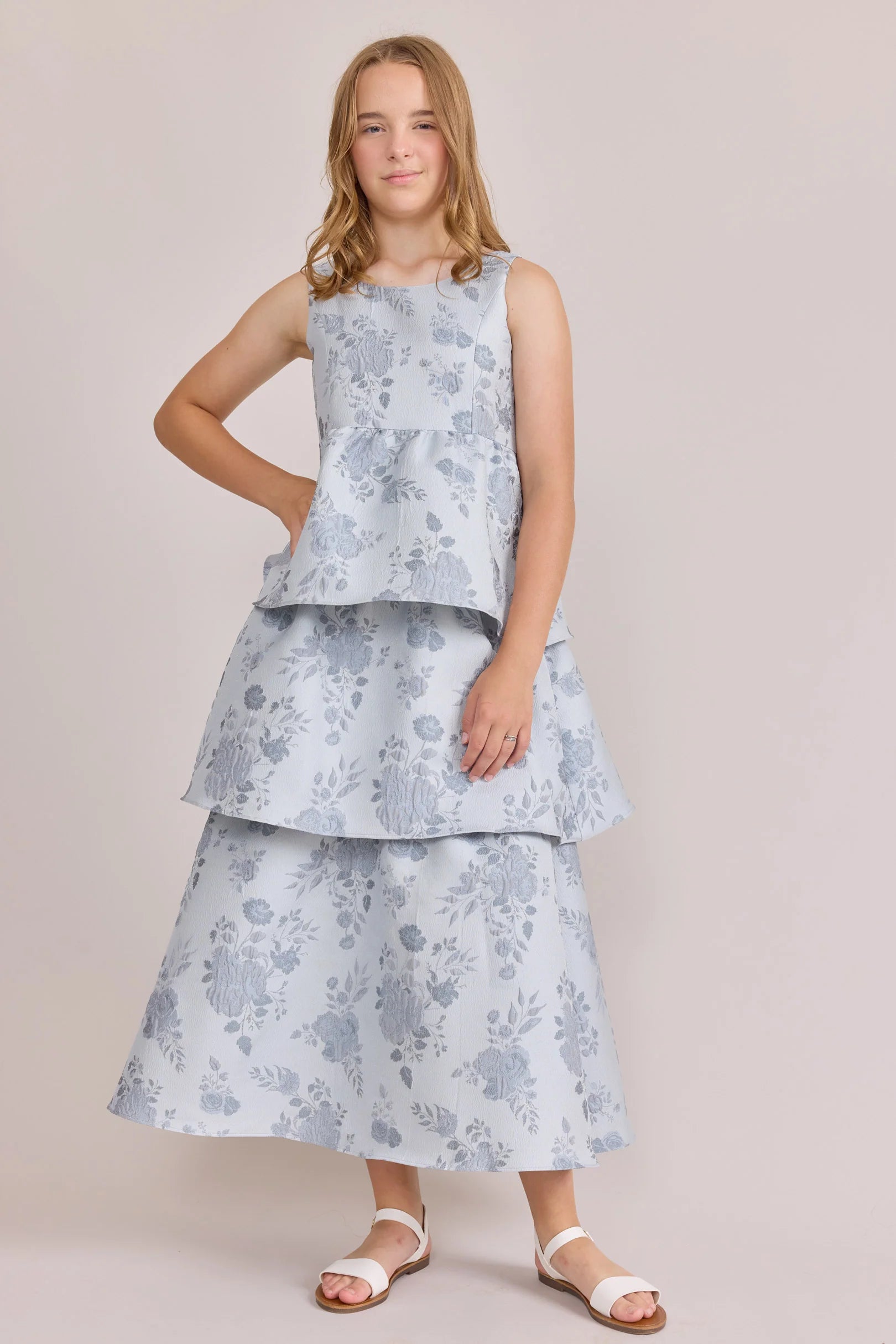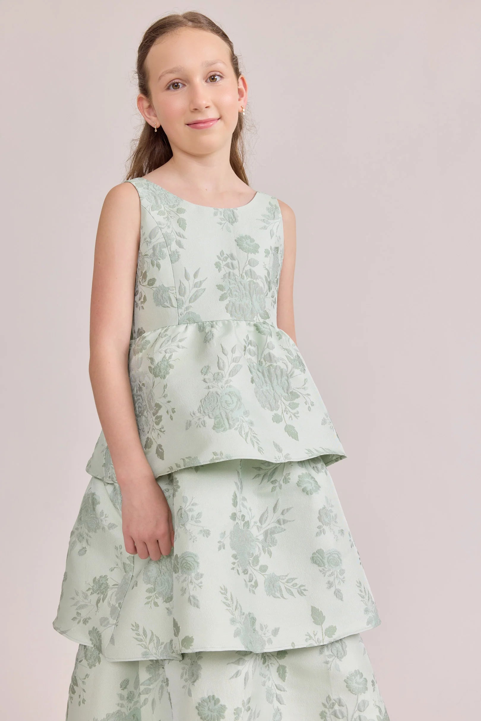 A ruffle-tiered dream in textured jacquard, our Dress is perfect for your Junior Bridesmaid to make a subtle yet stunning statement. The modest neckline offers a classic touch, while the low V-back and oversized bow bring the charm. Designed to beautifully complement our jacquard or solid bridesmaid styles.