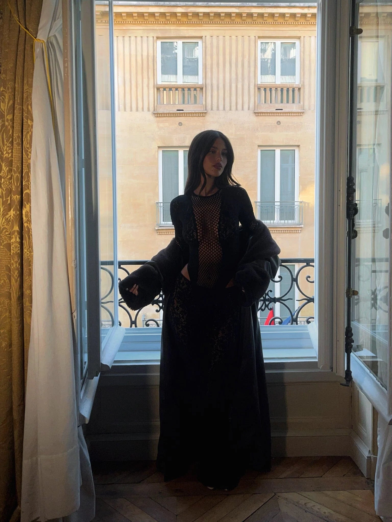 Style her with the matching 'Kerensa Top' in Black to create a coordinated and head-turning ensemble. Finish the look with strappy black heels and silver accessories for an effortlessly glamorous outfit, perfect for cocktail nights or an upscale dinner event.