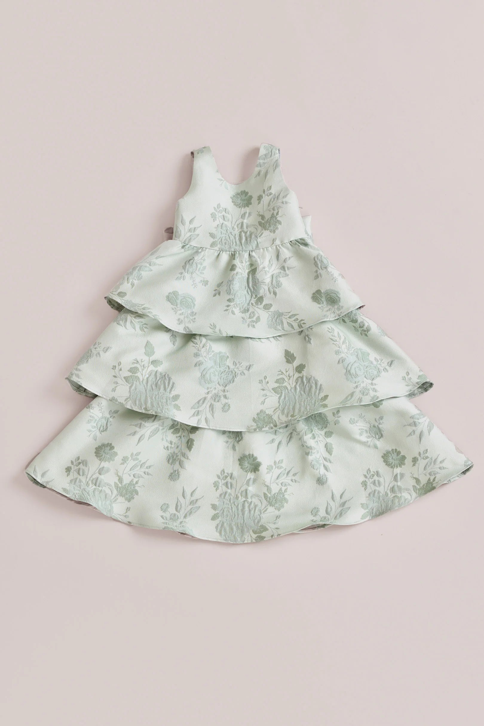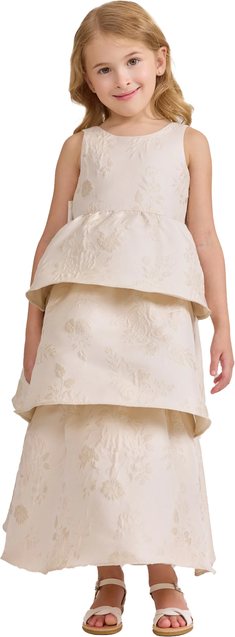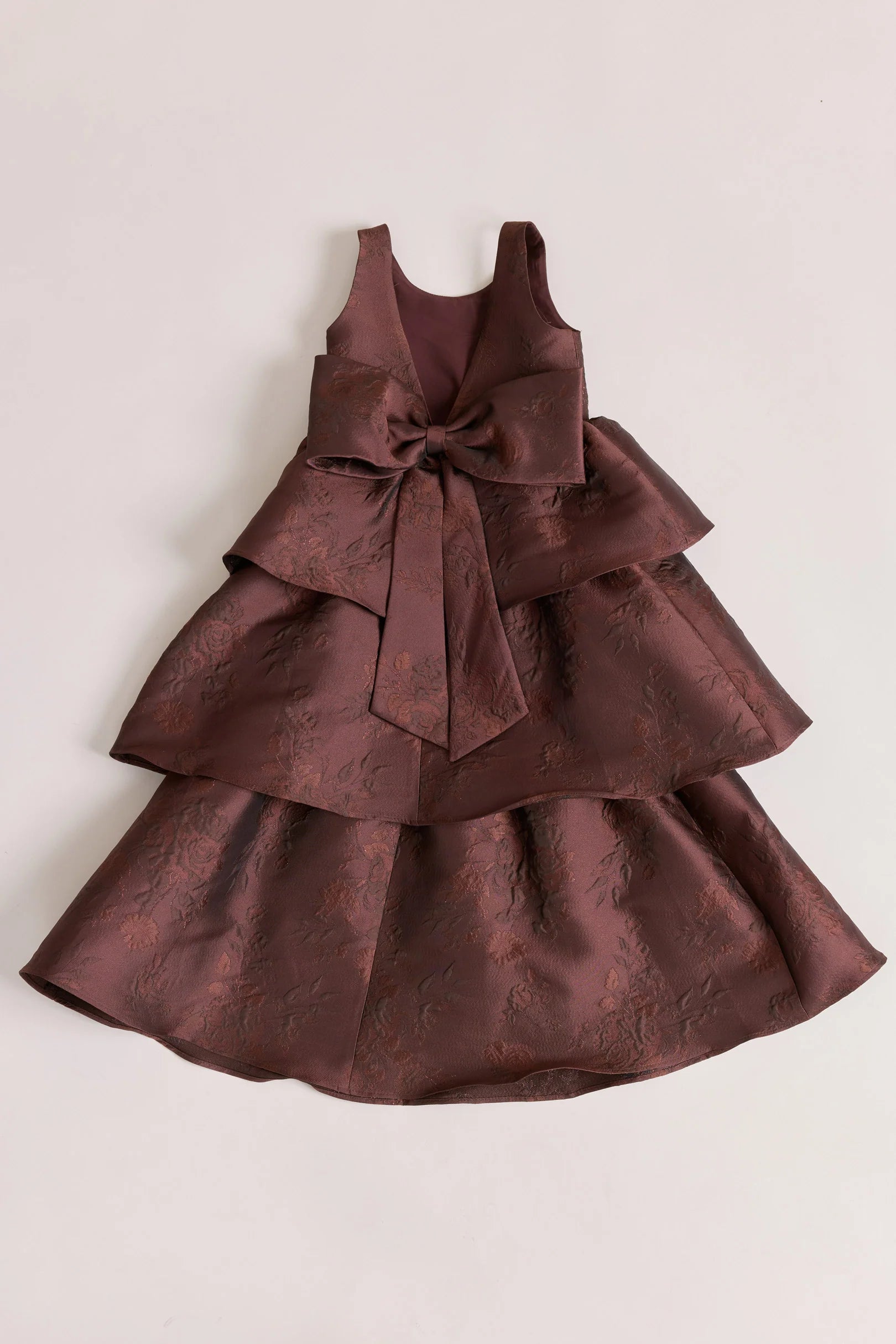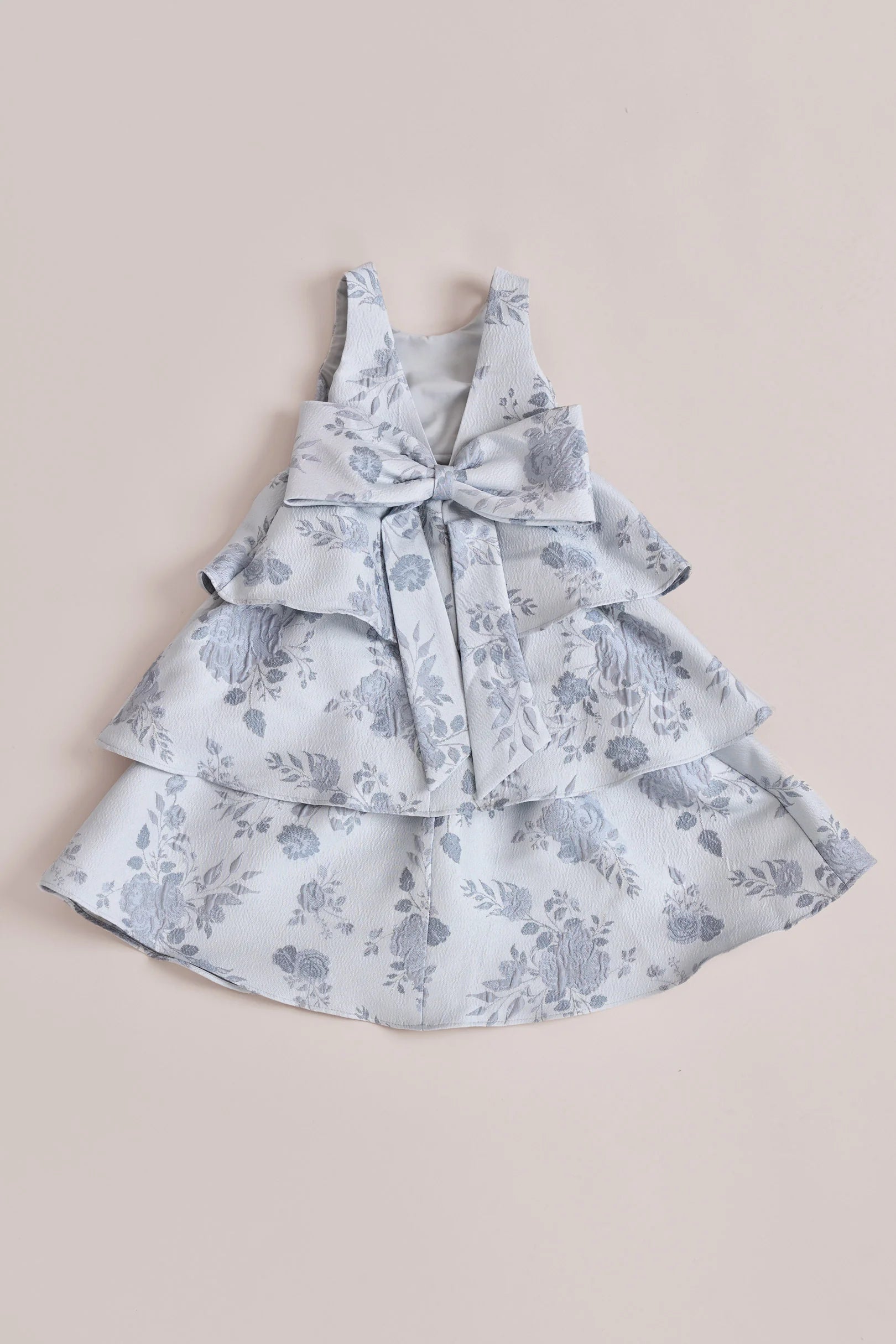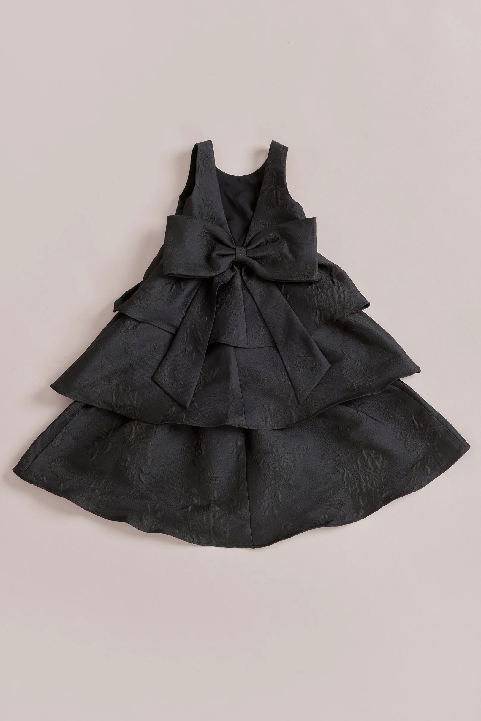 A ruffle-tiered dream in textured jacquard, our Dress is perfect for your Flower Girl to make a subtle yet stunning statement. The modest neckline offers a classic touch, while the low V-back and oversized bow bring the charm. Designed to beautifully complement our jacquard or solid bridesmaid styles.