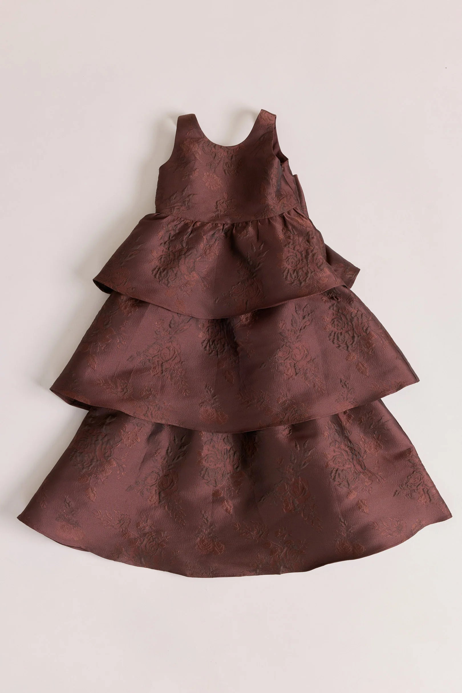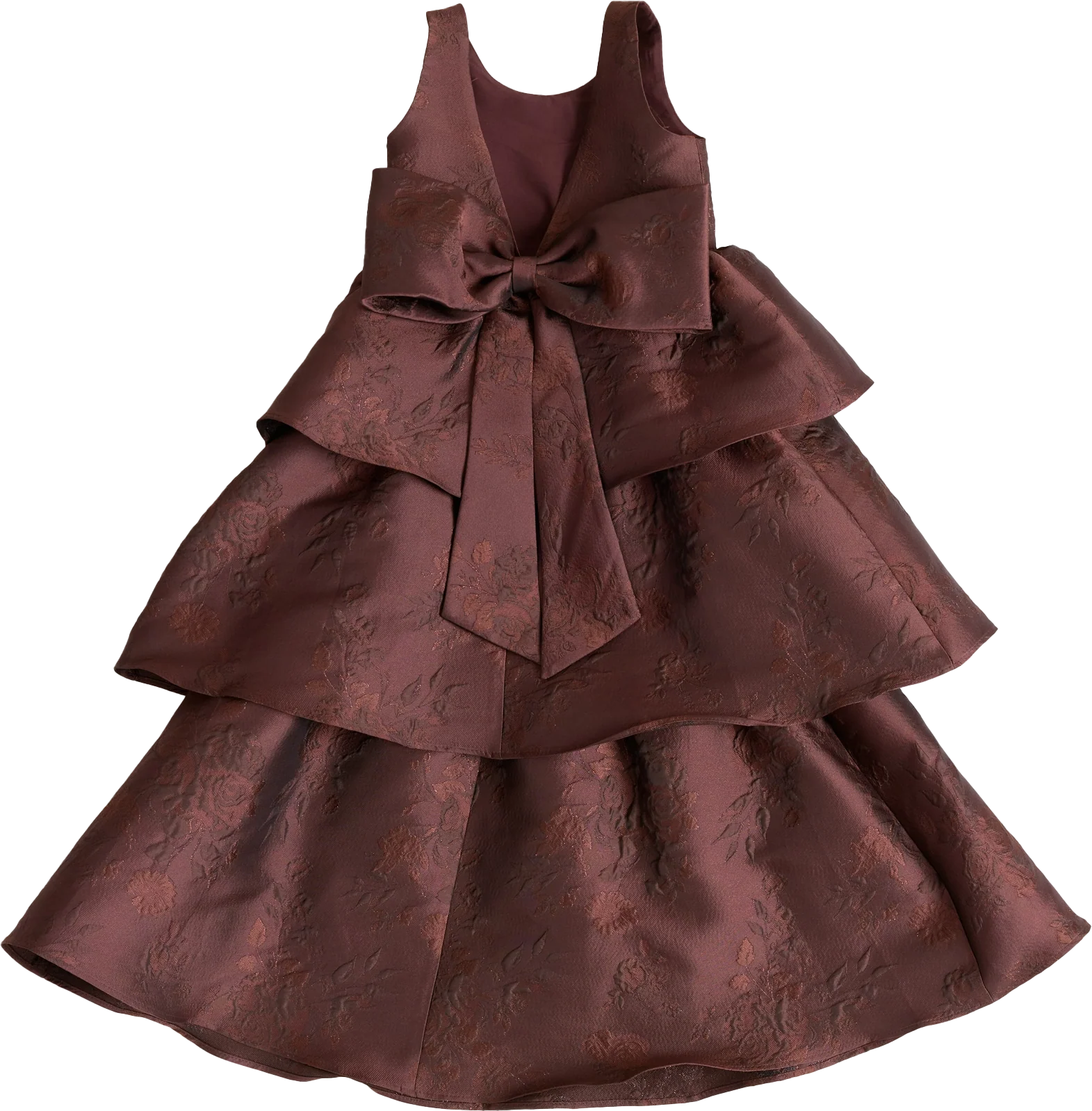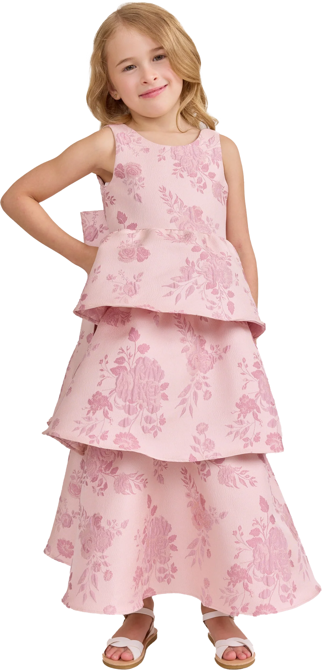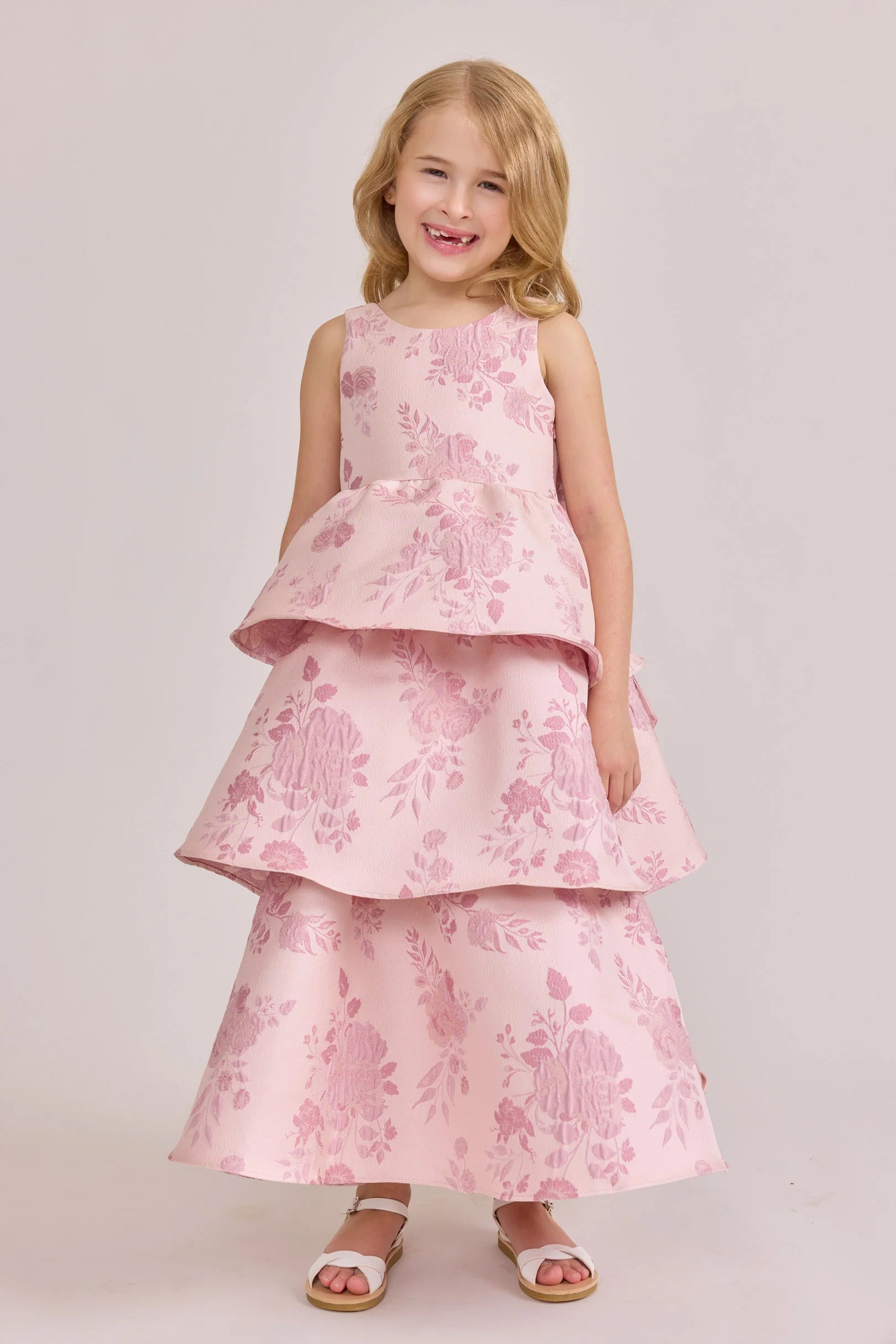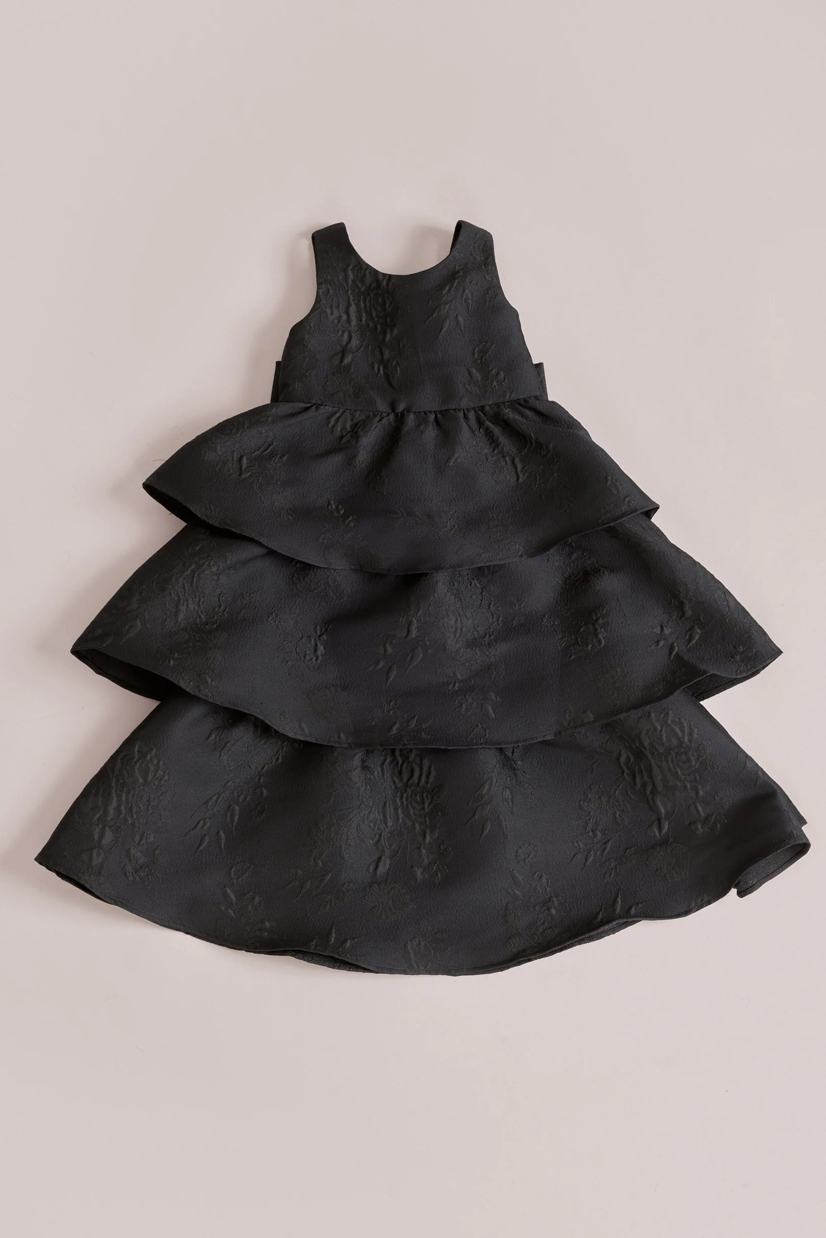 A ruffle-tiered dream in textured jacquard, our Dress is perfect for your Flower Girl to make a subtle yet stunning statement. The modest neckline offers a classic touch, while the low V-back and oversized bow bring the charm. Designed to beautifully complement our jacquard or solid bridesmaid styles.
