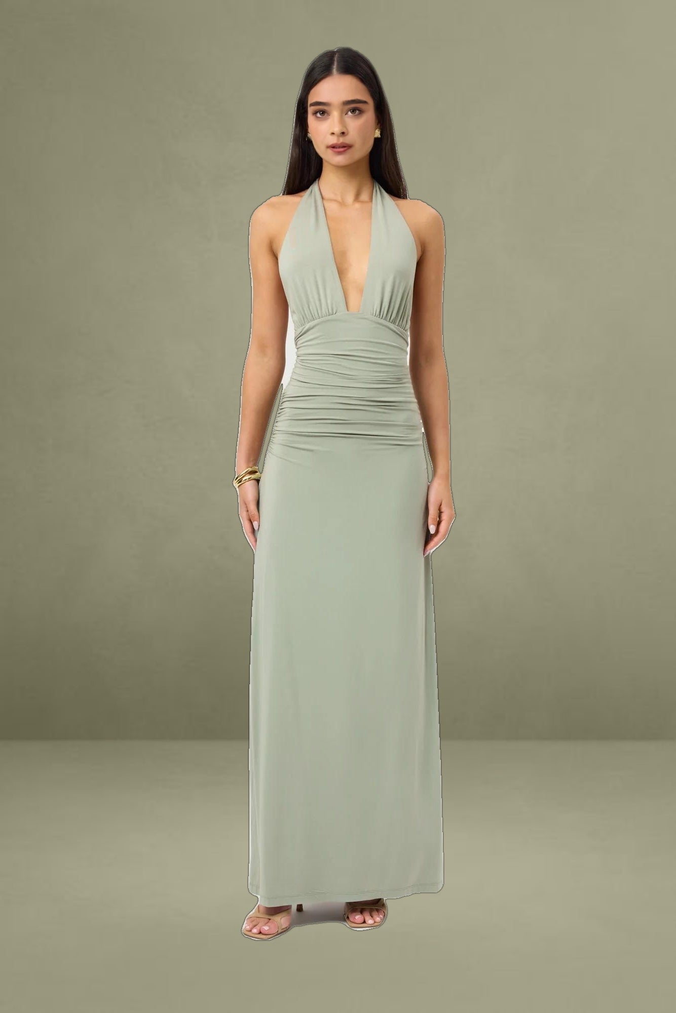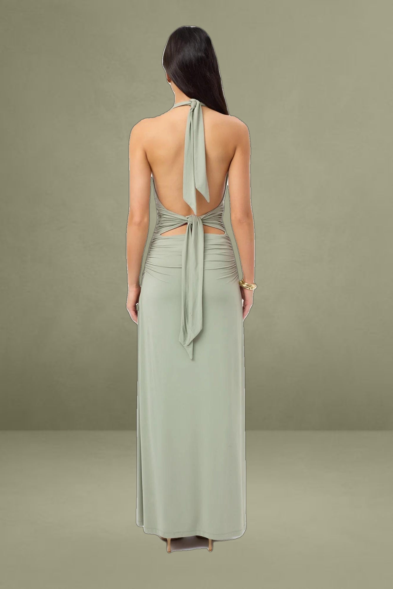 Embrace the allure of the Leni Maxi Dress in Sage. Crafted from our much loved Rayon Jersey Fabrication features a captivating halter neckline and a flowing maxi silhouette, creating a graceful and feminine look. The dress is designed with a flattering fit around the waist and ties in the back, accentuating the silhouette.