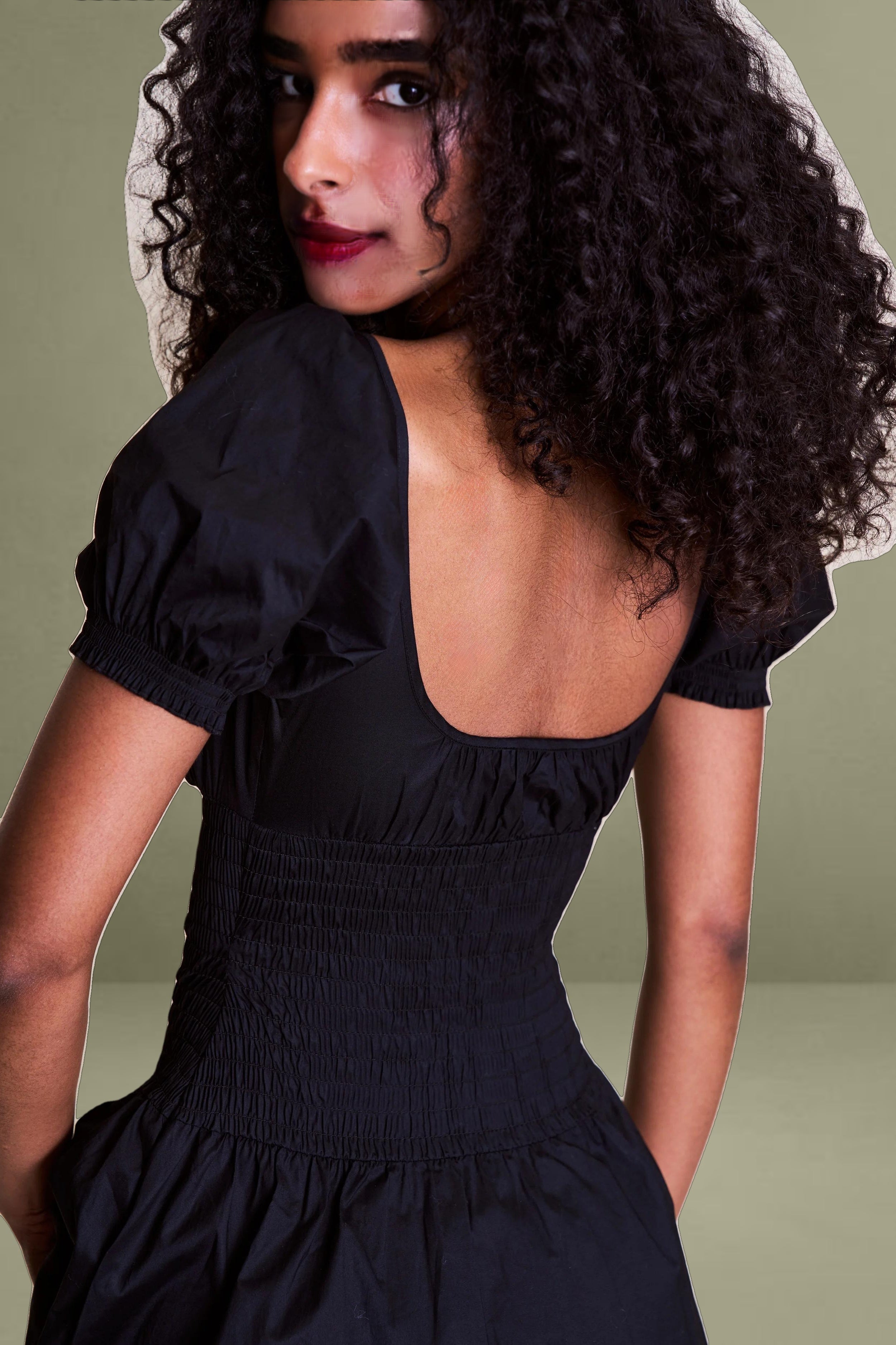 Eileen is wearing a size S and is 5'9" with a 32" bust, 35" hips, and 25.5" waist