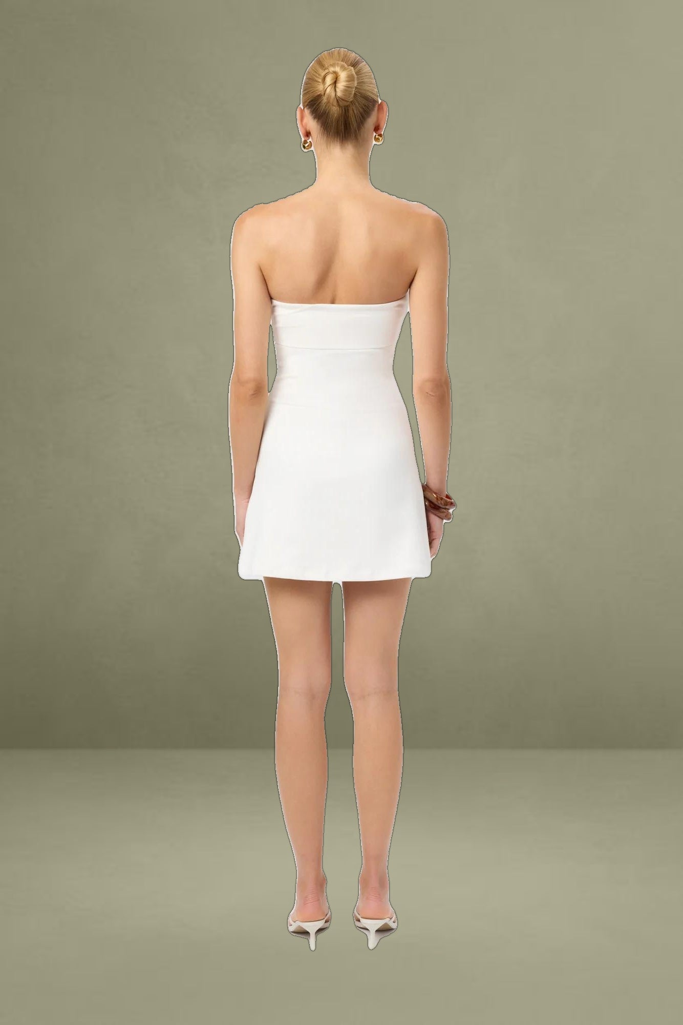 Discover this luxurious and elegant mini dress, ideal for any event. This strapless design has a gentle fit-and-flare shape, enhanced by under-bust details. Crafted from a cotton blend in a creamy color, it combines comfort and style.