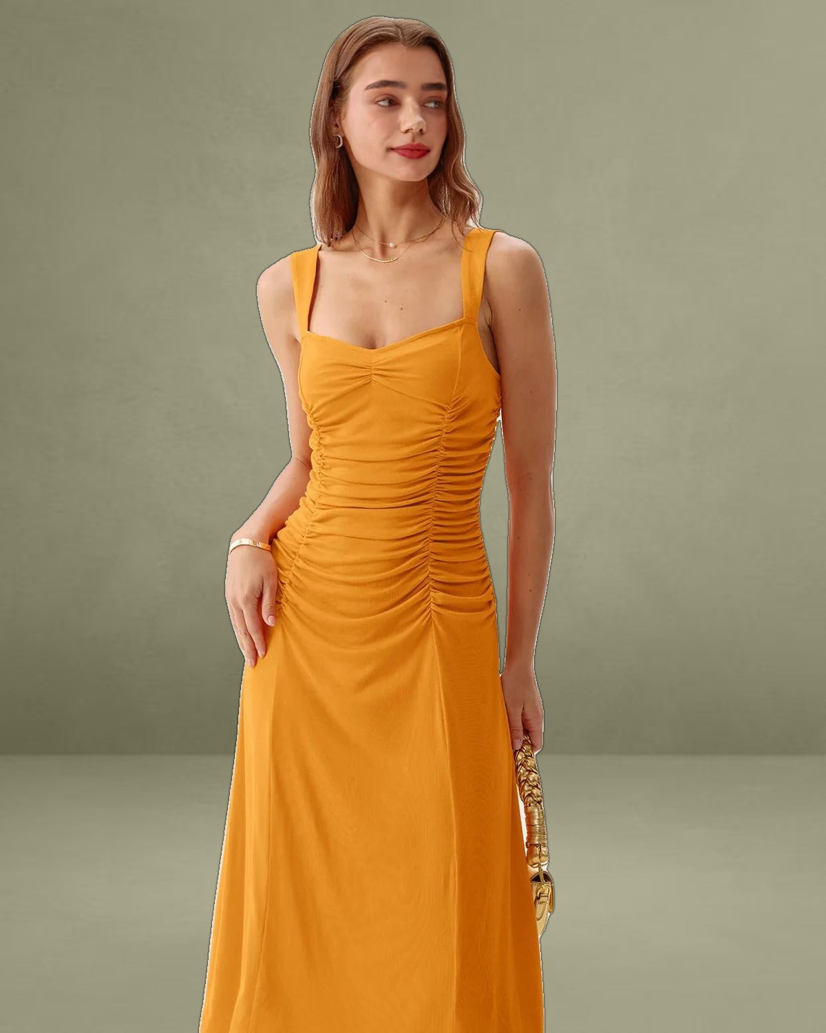This dress features a flattering ruched design that accentuates your silhouette, while the soft knitted fabric ensures a comfortable fit. The rich coffee color adds warmth to your look, making it perfect for both casual outings and evening events.