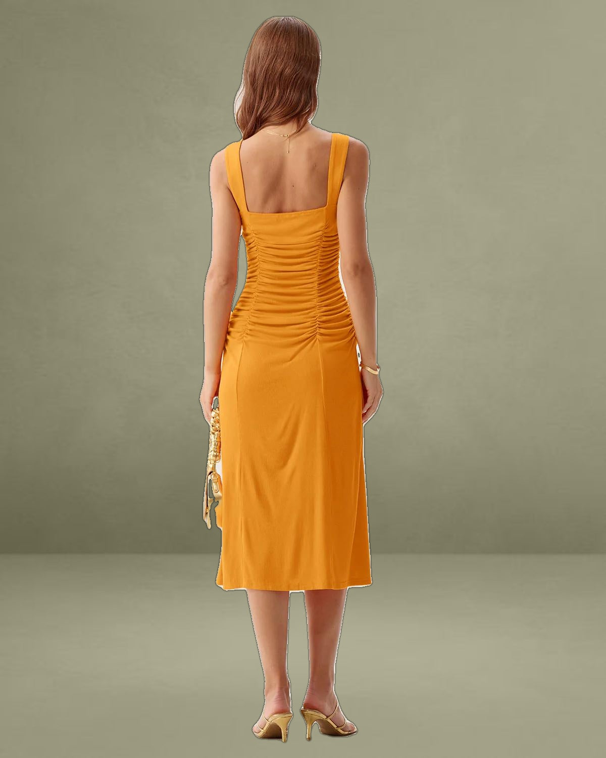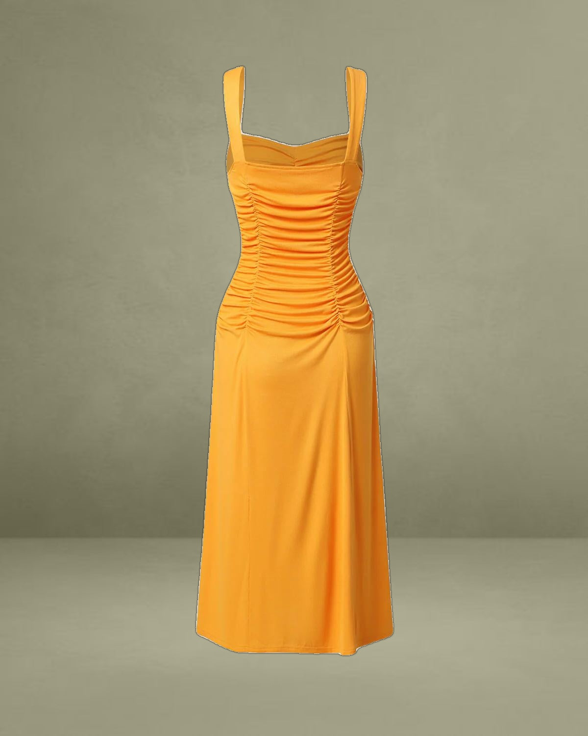This Slip Midi Dress is made of Viscose and Spandex. Viscose (aka rayon) is a man-made cellulosic fiber made from wood pulp. It's soft, breathable, durable, and moisture-wicking.