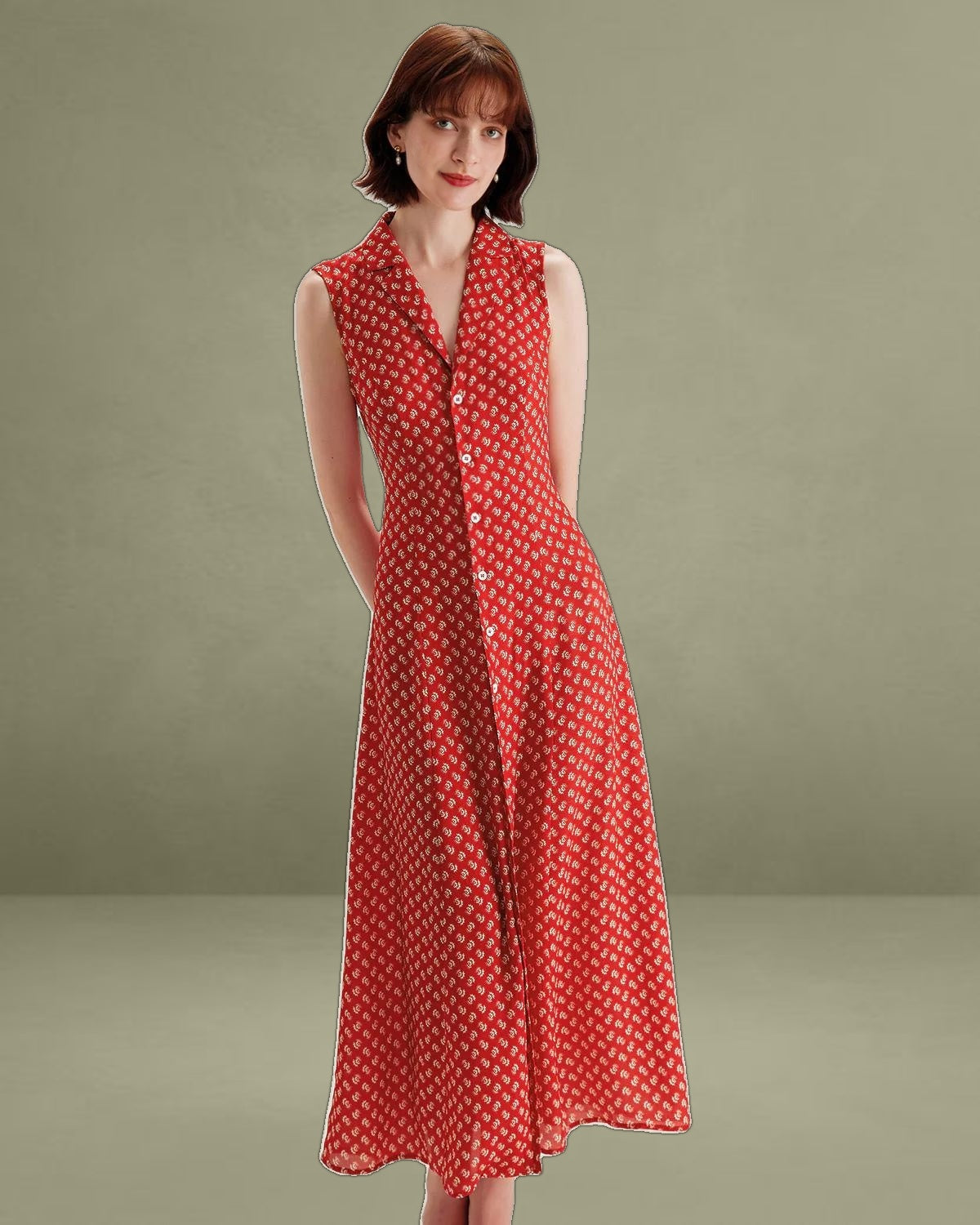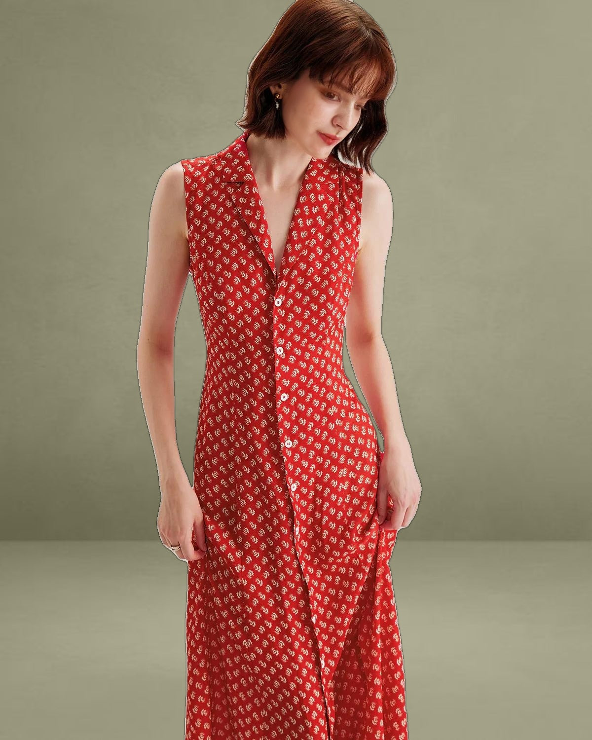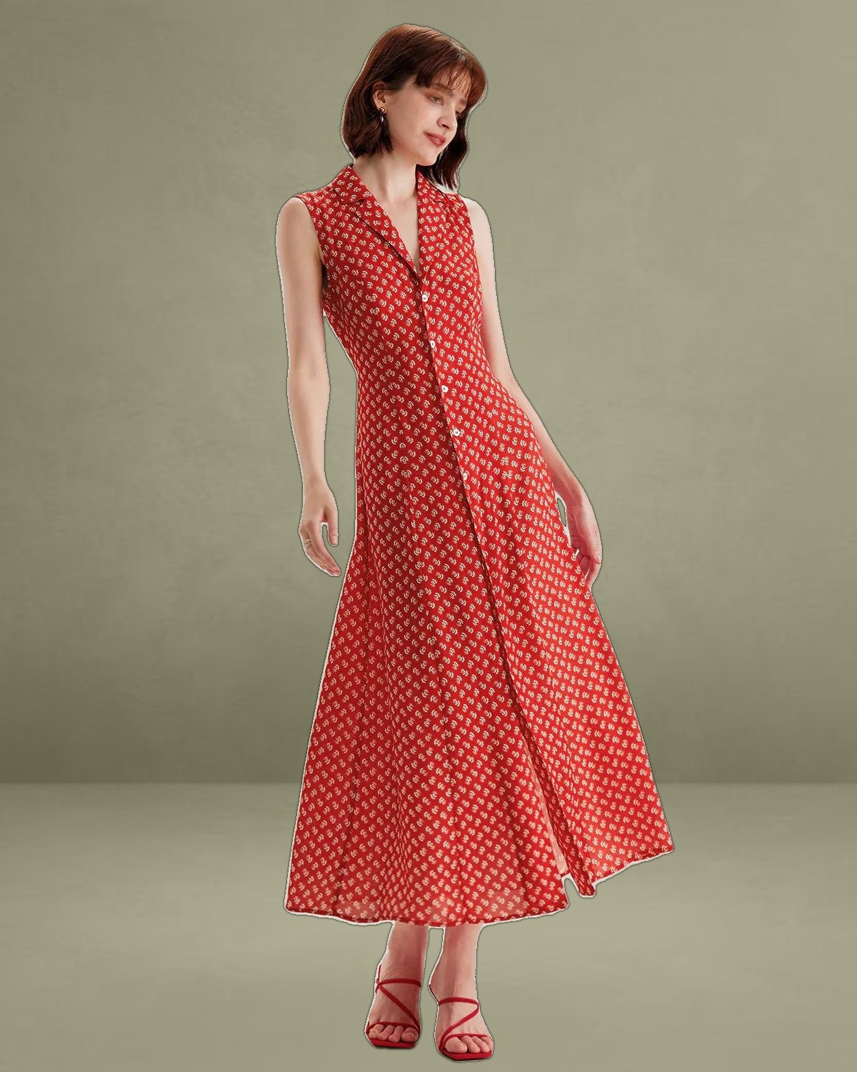 Make a statement in the Red Maxi Dress, a bold blend of romance and ease. Adorned with vibrant floral prints, this maxi dress features a sleeveless design and button-down front that flows into a breezy, floor-length silhouette. Perfect for sun-drenched days, garden parties, or vacation getaways.