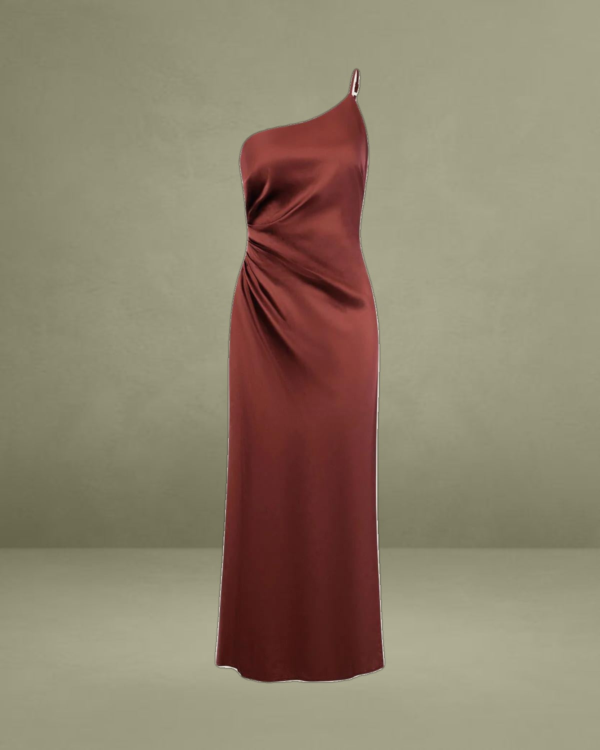 Crafted from luxurious satin, this dress features a striking one-shoulder design that adds a touch of modern glamour. The rich green hue enhances its timeless appeal, while the flowing maxi length creates a graceful and flattering silhouette. Perfect for evening events or formal gatherings, this dress ensures you make a memorable impression.