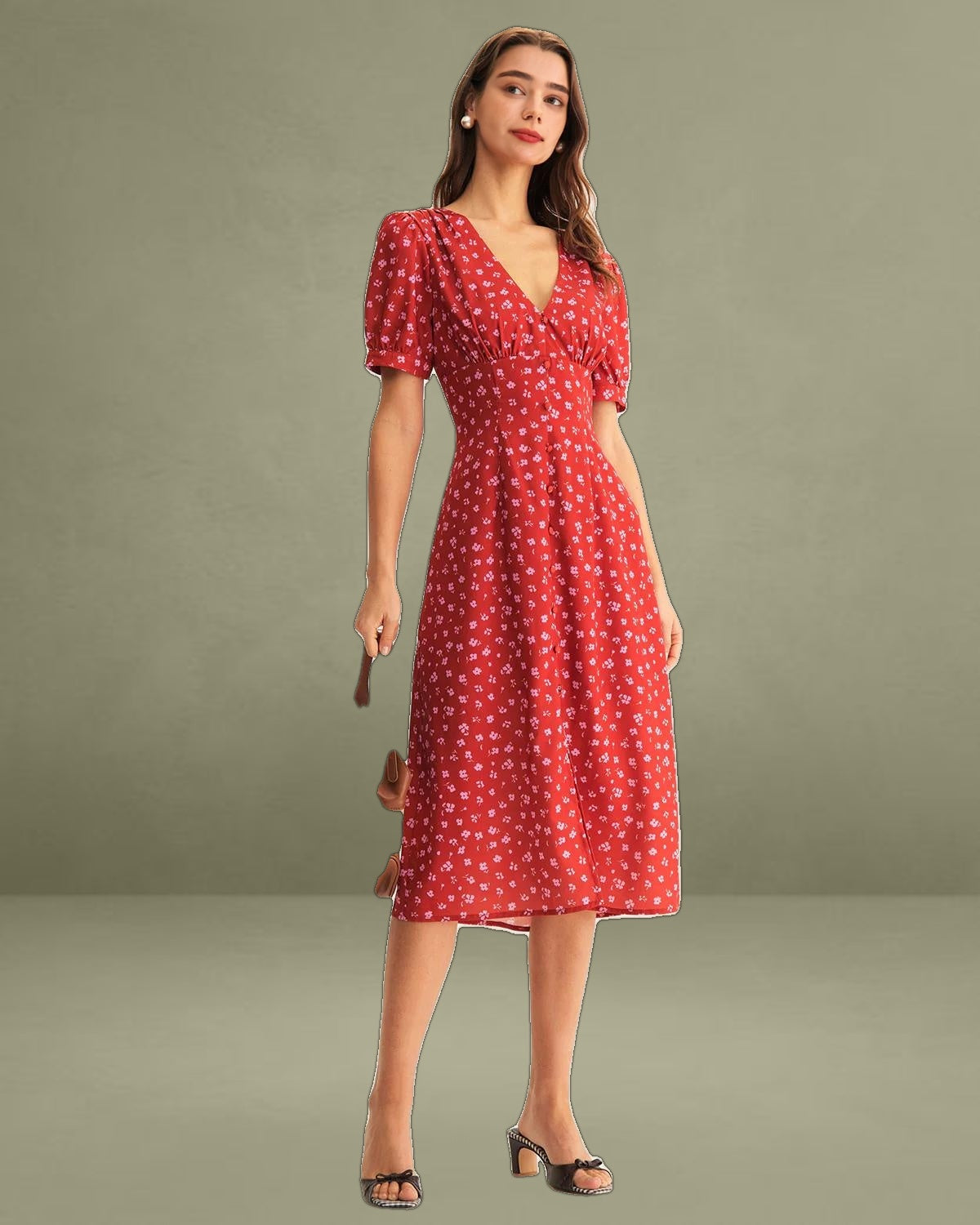 Playful yet elegant, this red polka dot midi dress features flattering ruching and a timeless silhouette. The fitted bodice and flowy skirt create a chic, feminine look, perfect for brunch dates or summer outings. Lightweight and comfortable, it’s a go-to piece for effortless charm.