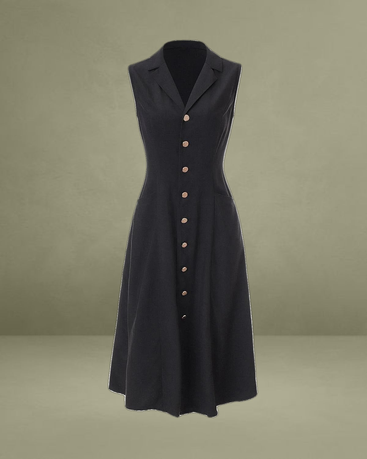 This tunic midi dress is designed for office ladies, showing temperament and grace owned by women. Featuring a v-neck, lapel, and sleeveless design, the women's upper part is well-decorated, stereo, and noble. Plus, the high-waisted design is conducive to balancing women's figure ratio, while the single-breasted design adds a sense of design to it, brightening the whole dress.