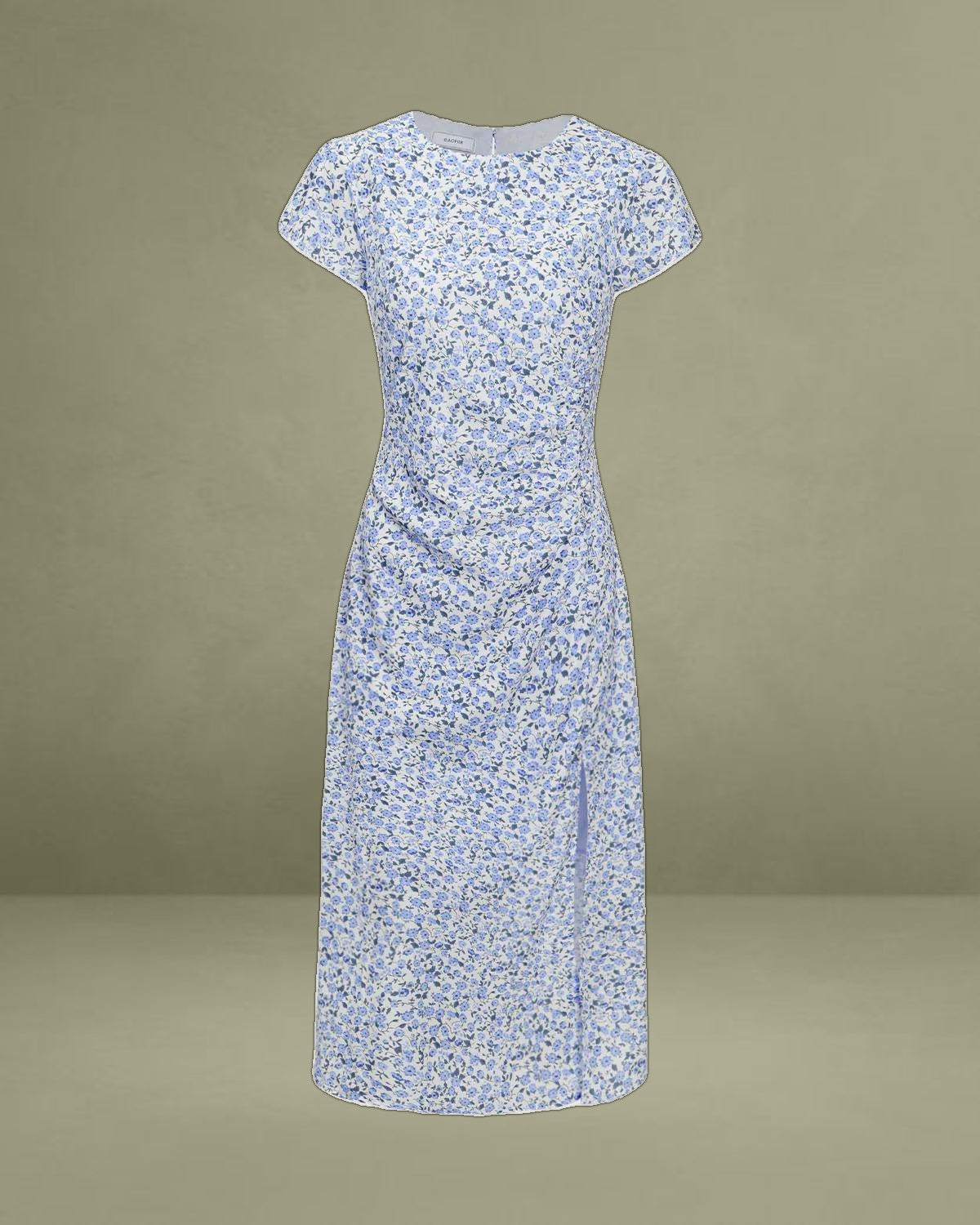 This Floral Midi Dress is a perfect choice for any occasion. The slim fit, round neck and ruched design of the dress adds movement and flow, making it easy to wear. The button and floral print deisgn adds a feminine touch and makes this dress perfect for any occasion. Whether you're going out on a date or attending a formal event, this dress is sure to turn heads and make you feel fabulous.