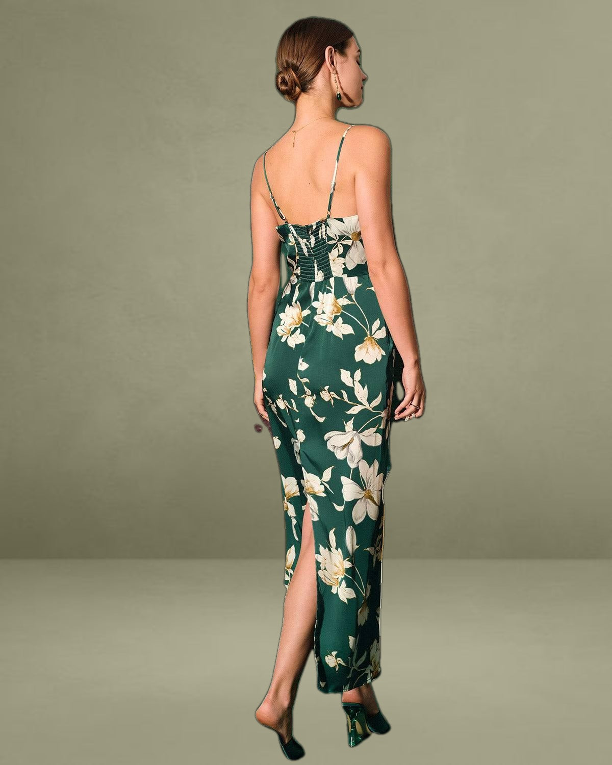 The floral pattern is the highlight of this cami dress, bright enough to be eye-catching. Coupled with the adjustable strap design, it is both convenient and sexy. Plus, the slit design adds a little bit of design, while the high-waisted and slim-fit design gives a good display of women's perfect figures. It suits various important occasions, helping you be the focus among the crowds.