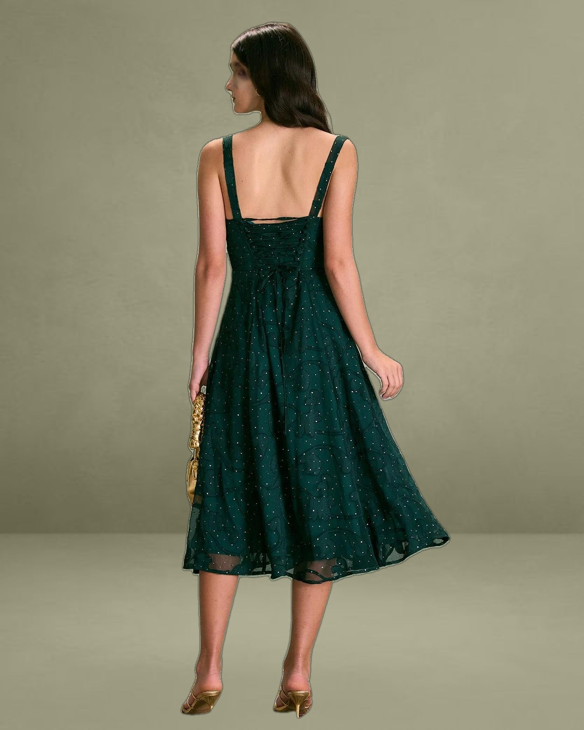 Crafted from luxurious jacquard fabric, it boasts a rich texture and intricate patterns that enhance its upscale appeal. The dress falls to a flattering midi length, with a stylish slit that adds a hint of allure and ease of movement.