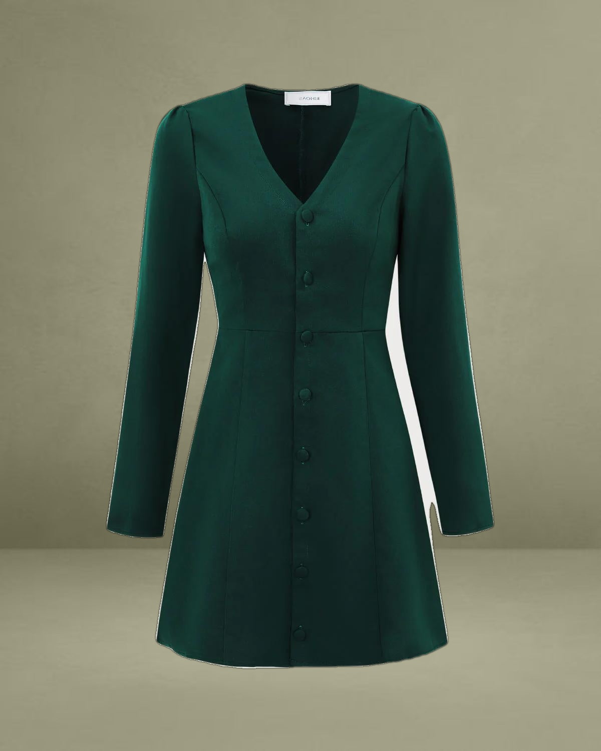 This Long Sleeve Mini Dress is a stunning and elegant dress that is perfect for any occasion. The while the button and shirt type adds a touch of sophistication to the dress and adds a unique and eye-catching element. The long sleeves, A-Line and slim fit make it comfortable and easy to wear, while also creating a flattering silhouette that accentuates the figure.