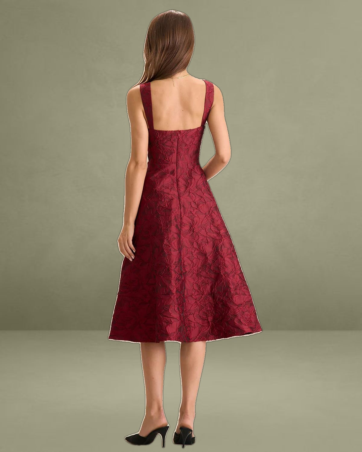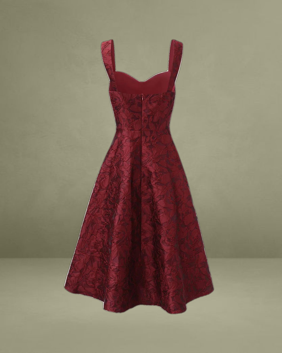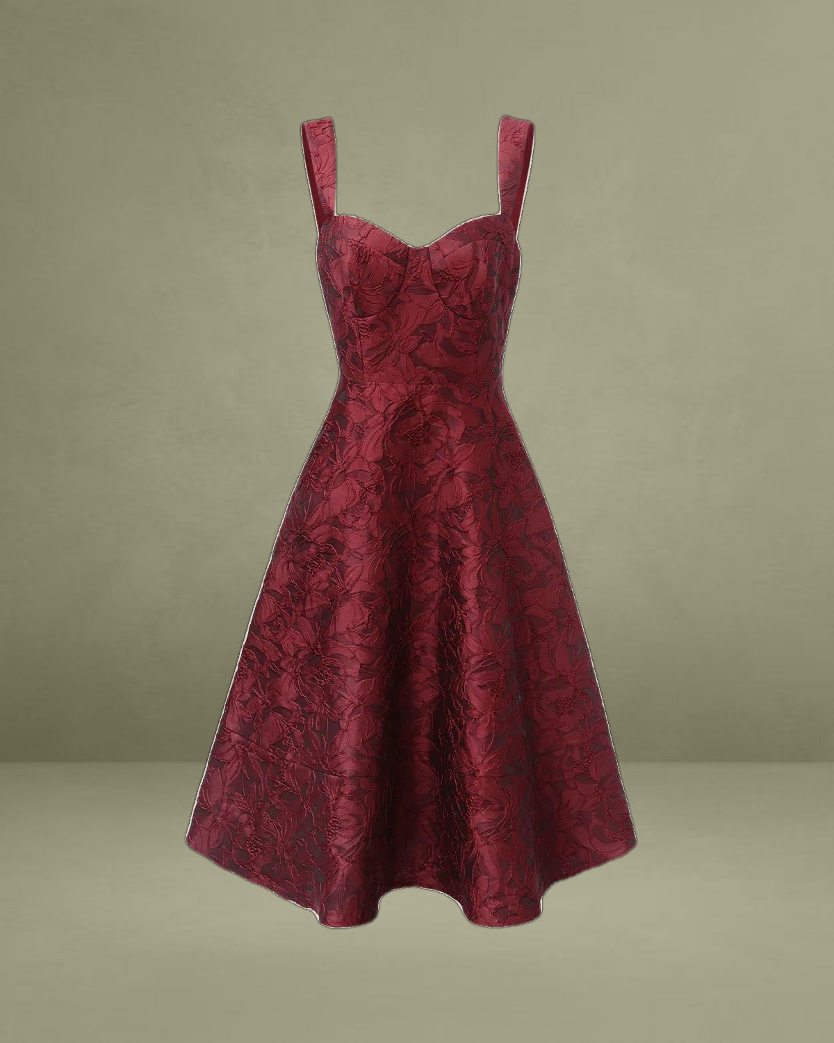 Crafted from luxurious jacquard fabric, this red dress boasts a subtle texture and a refined sheen that elevates its overall look. The pristine white hue offers a versatile canvas that can be styled for a variety of occasions, from formal events to cocktail parties.