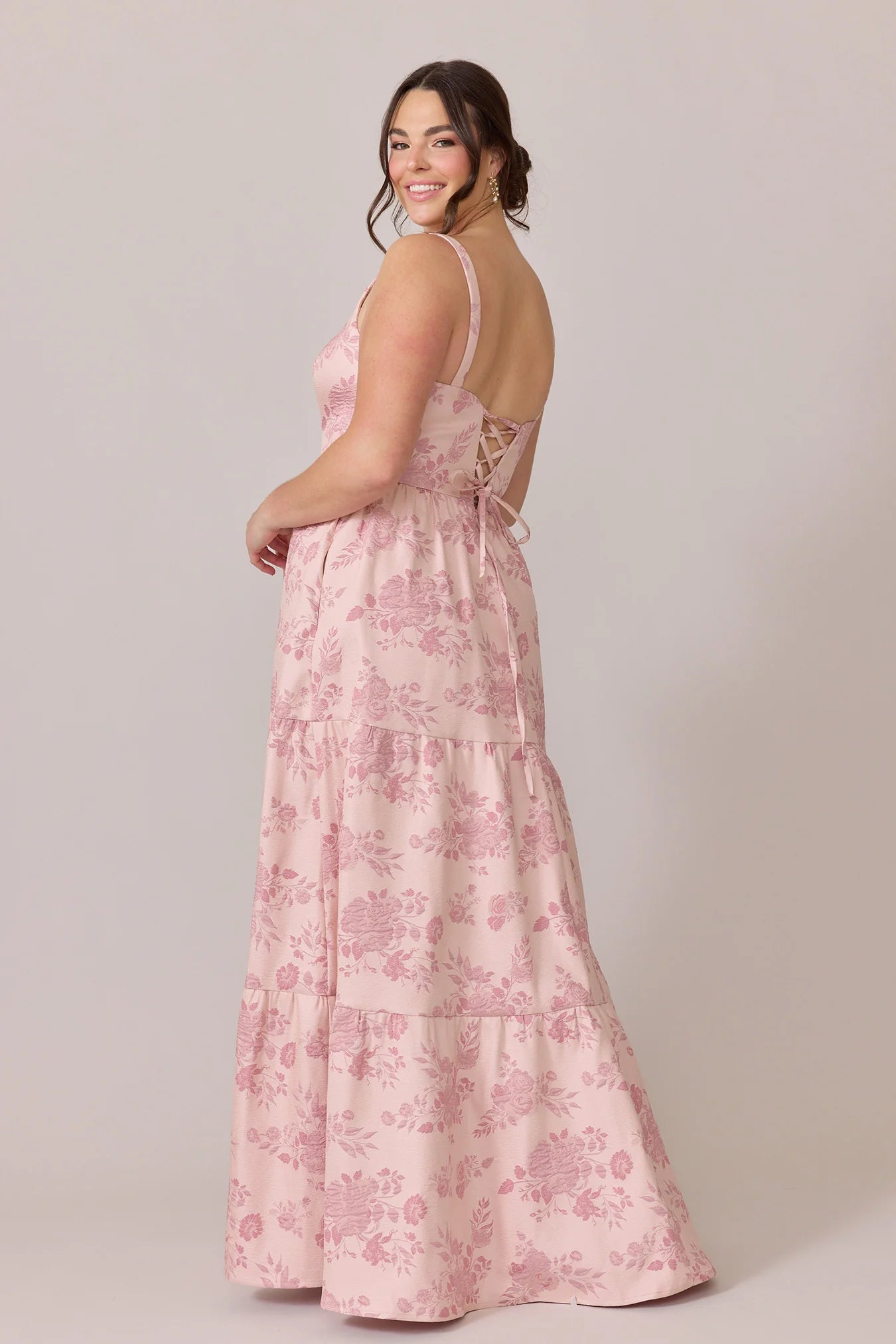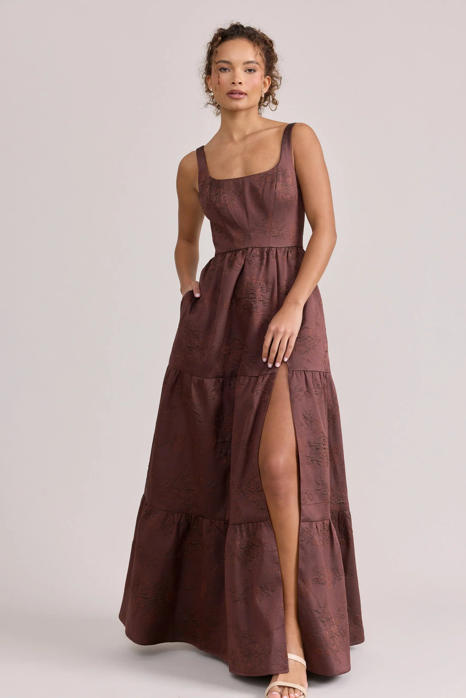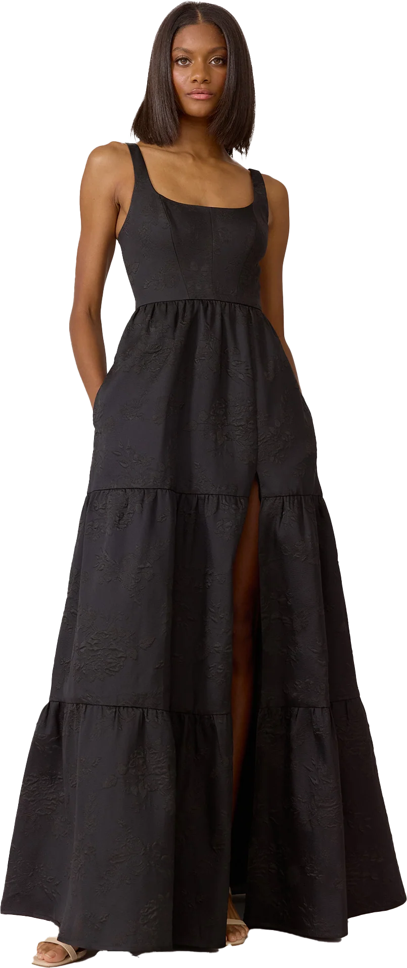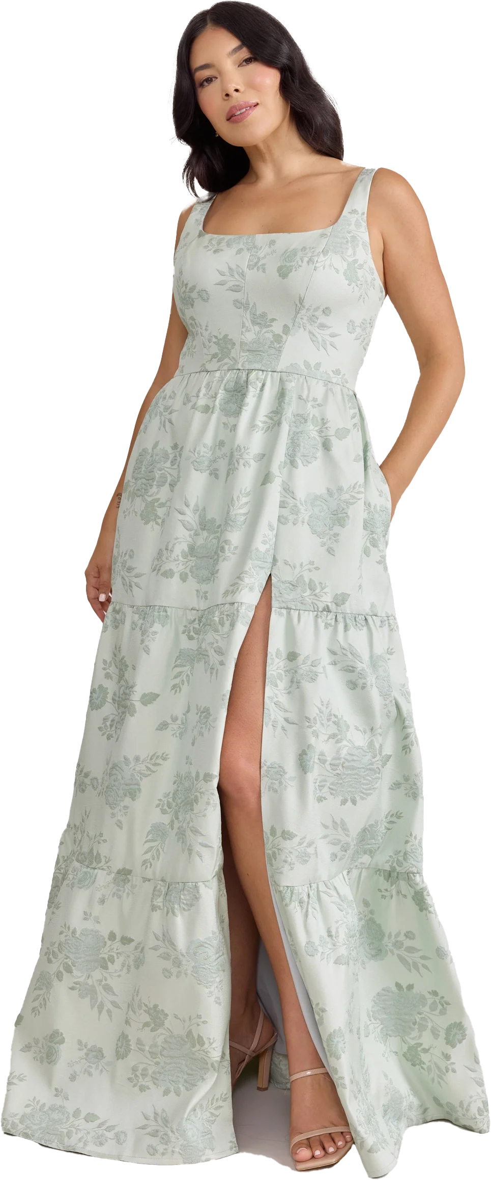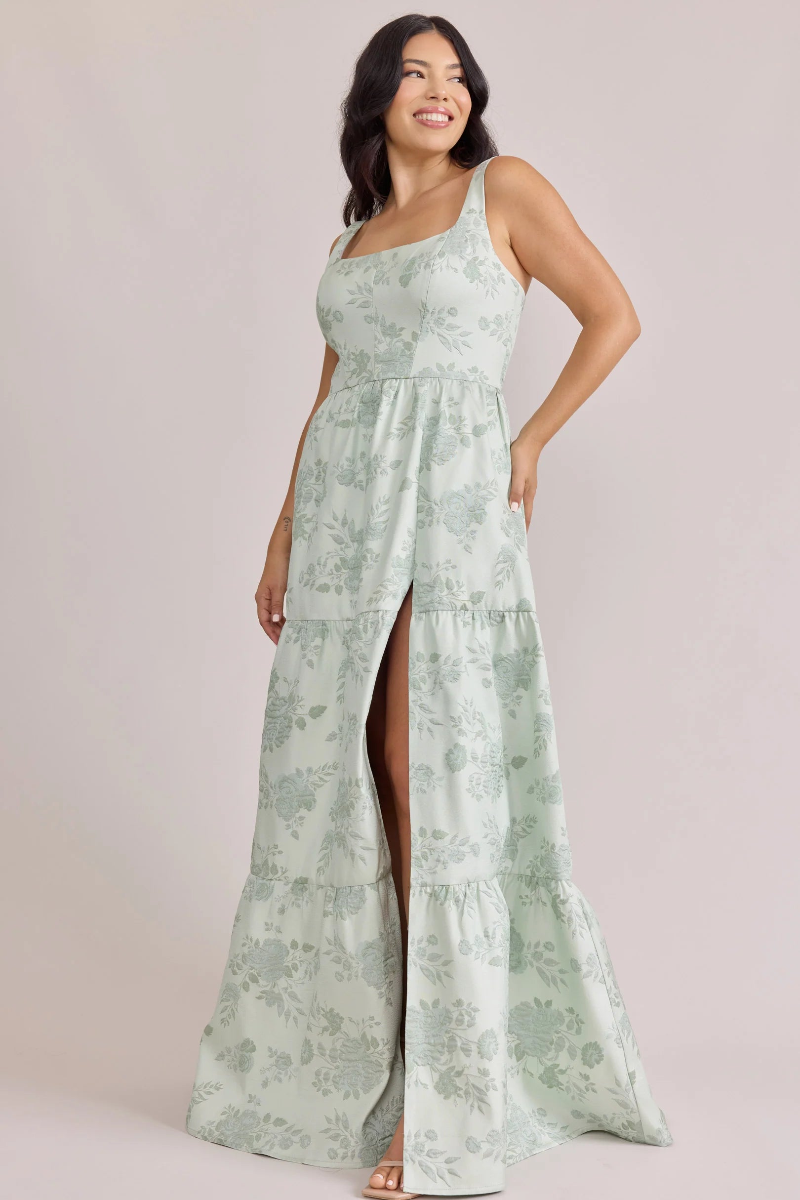 Our Winslet jacquard dress is a timeless style that flatters every body type. With a modern square neckline, Winslet has a fitted, modest bodice that flows into a lightly gathered skirt. The best part? This dress has pockets! Winslet is also available with embellishments.