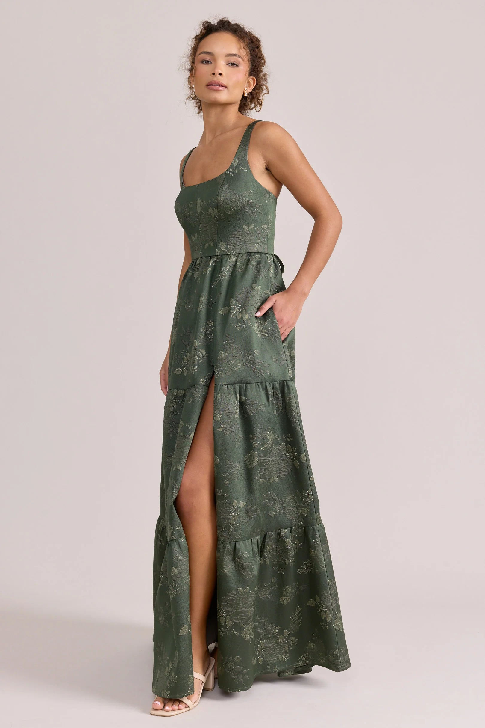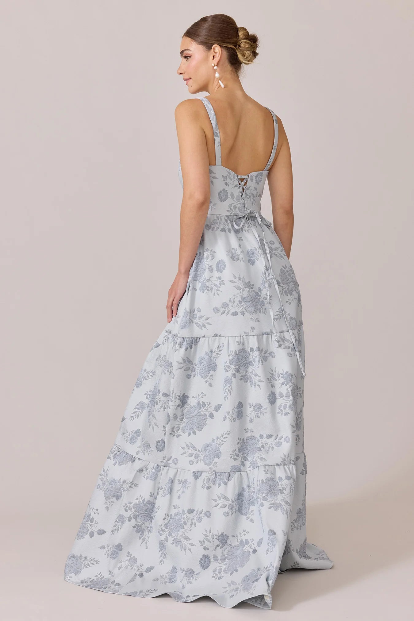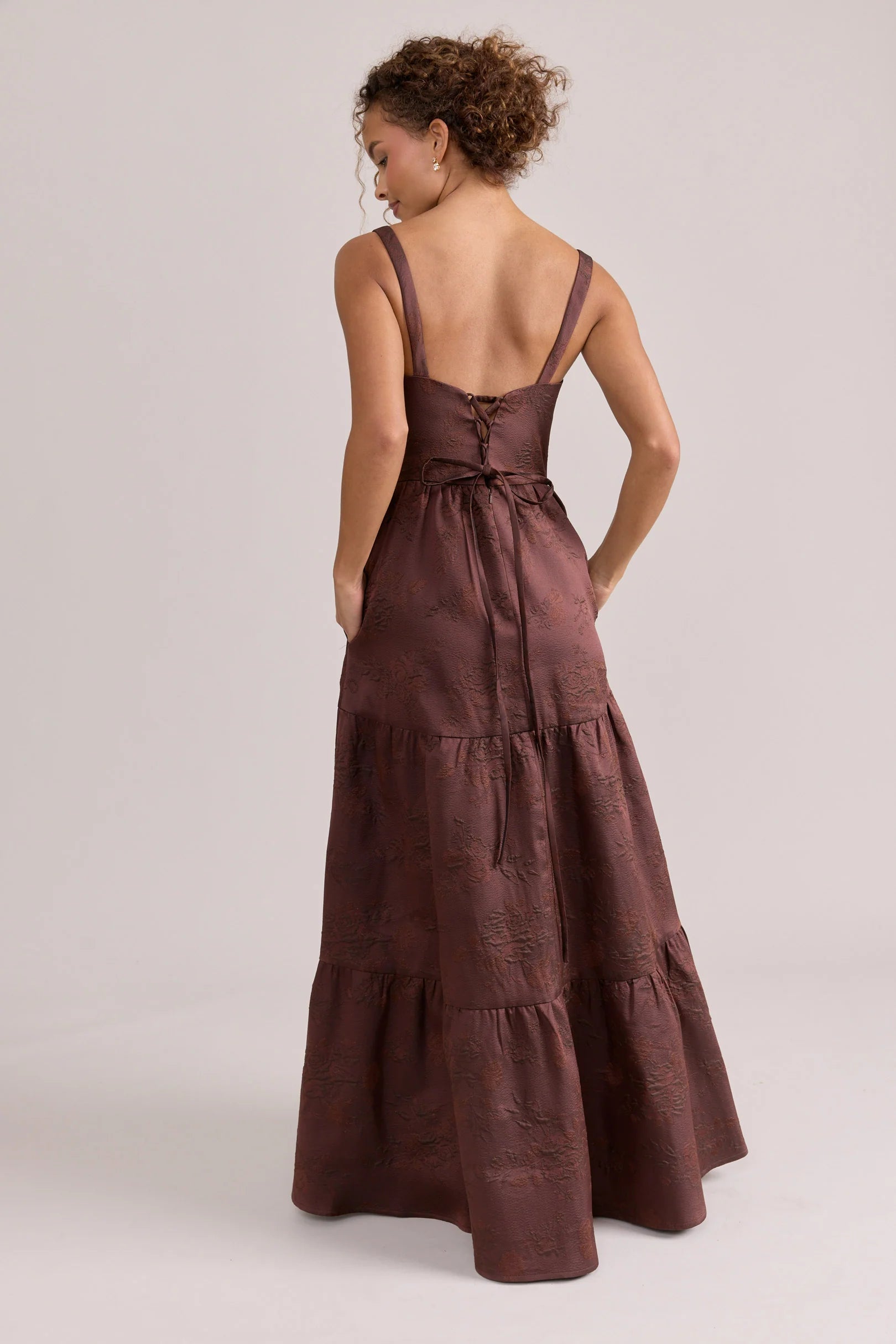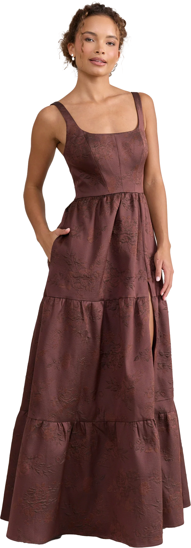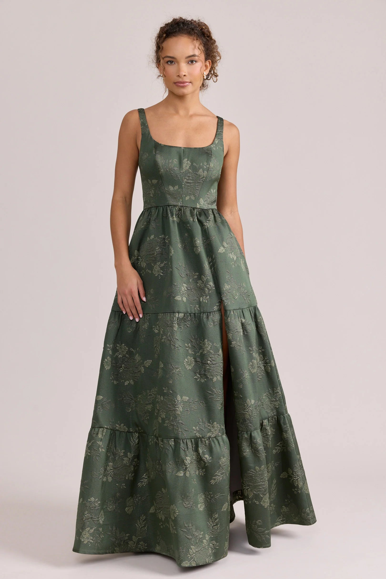 Our Winslet jacquard dress is a timeless style that flatters every body type. With a modern square neckline, Winslet has a fitted, modest bodice that flows into a lightly gathered skirt. The best part? This dress has pockets! Winslet is also available with embellishments.