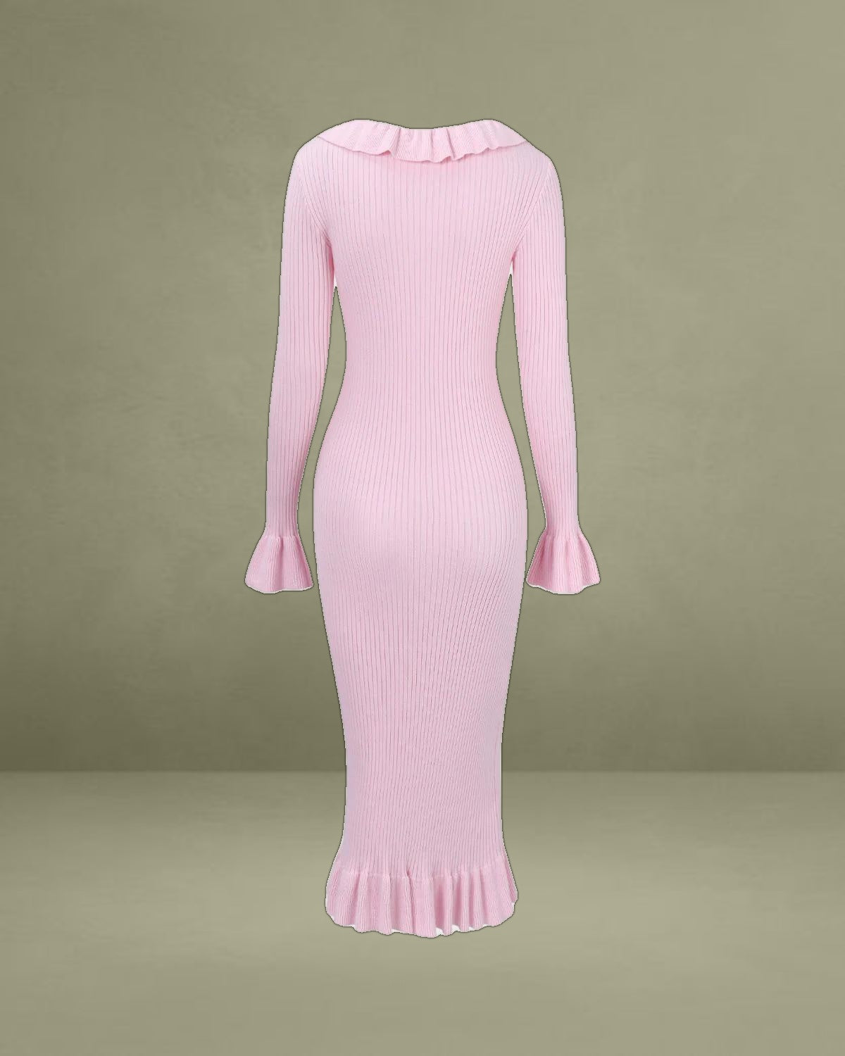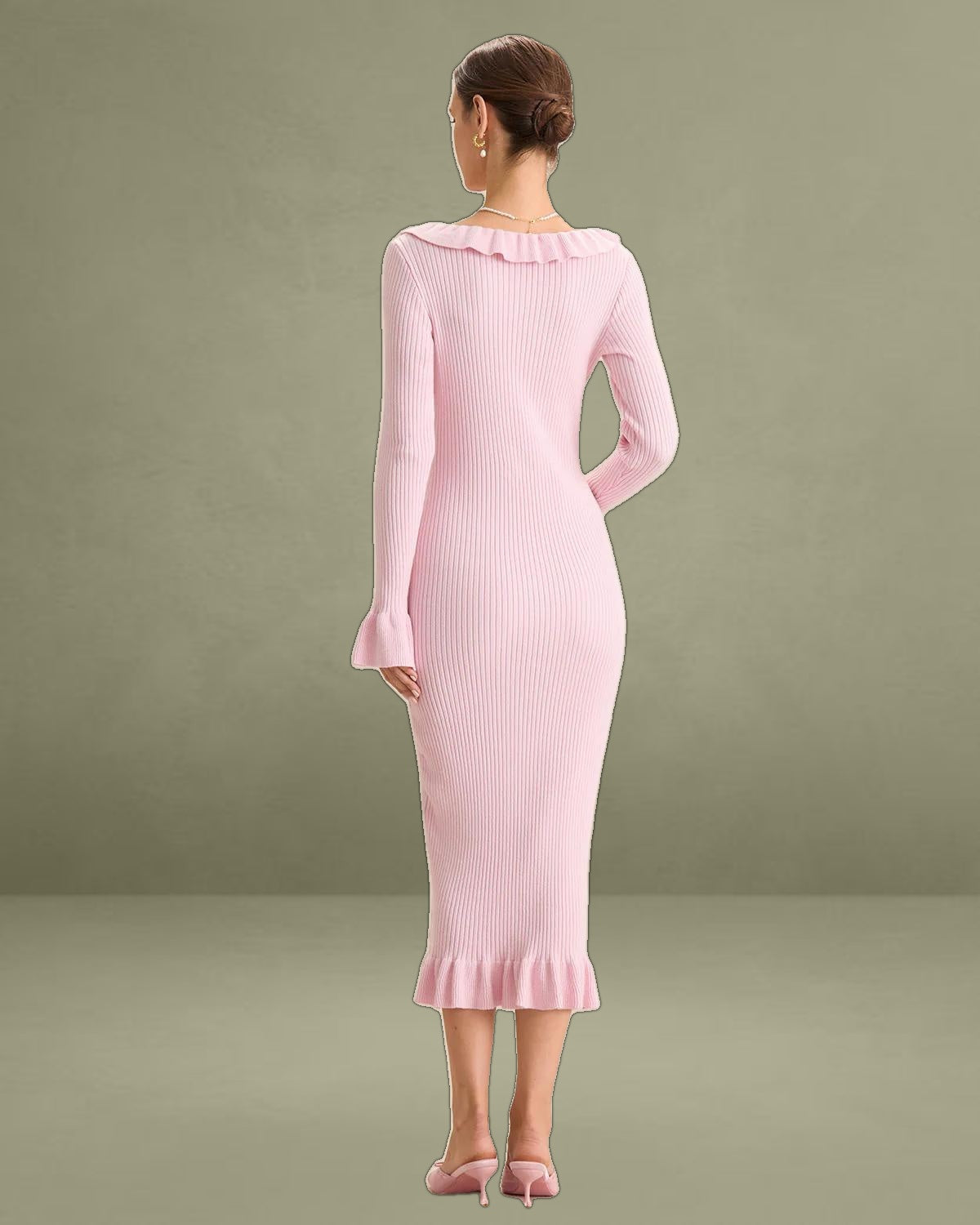 Made from a soft, stretchy fabric, it hugs your curves while offering comfort and warmth. The feminine U-neckline is accentuated by playful ruffles, adding a chic, romantic touch. Perfect for day-to-night transitions, this bodycon dress enhances your silhouette while maintaining a sophisticated look.