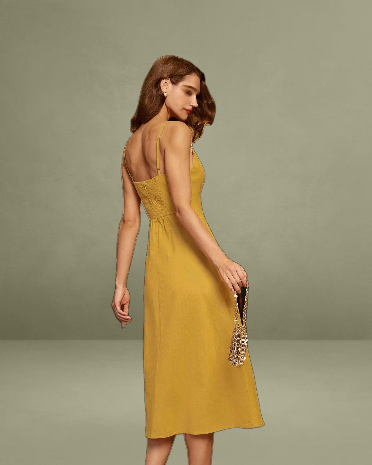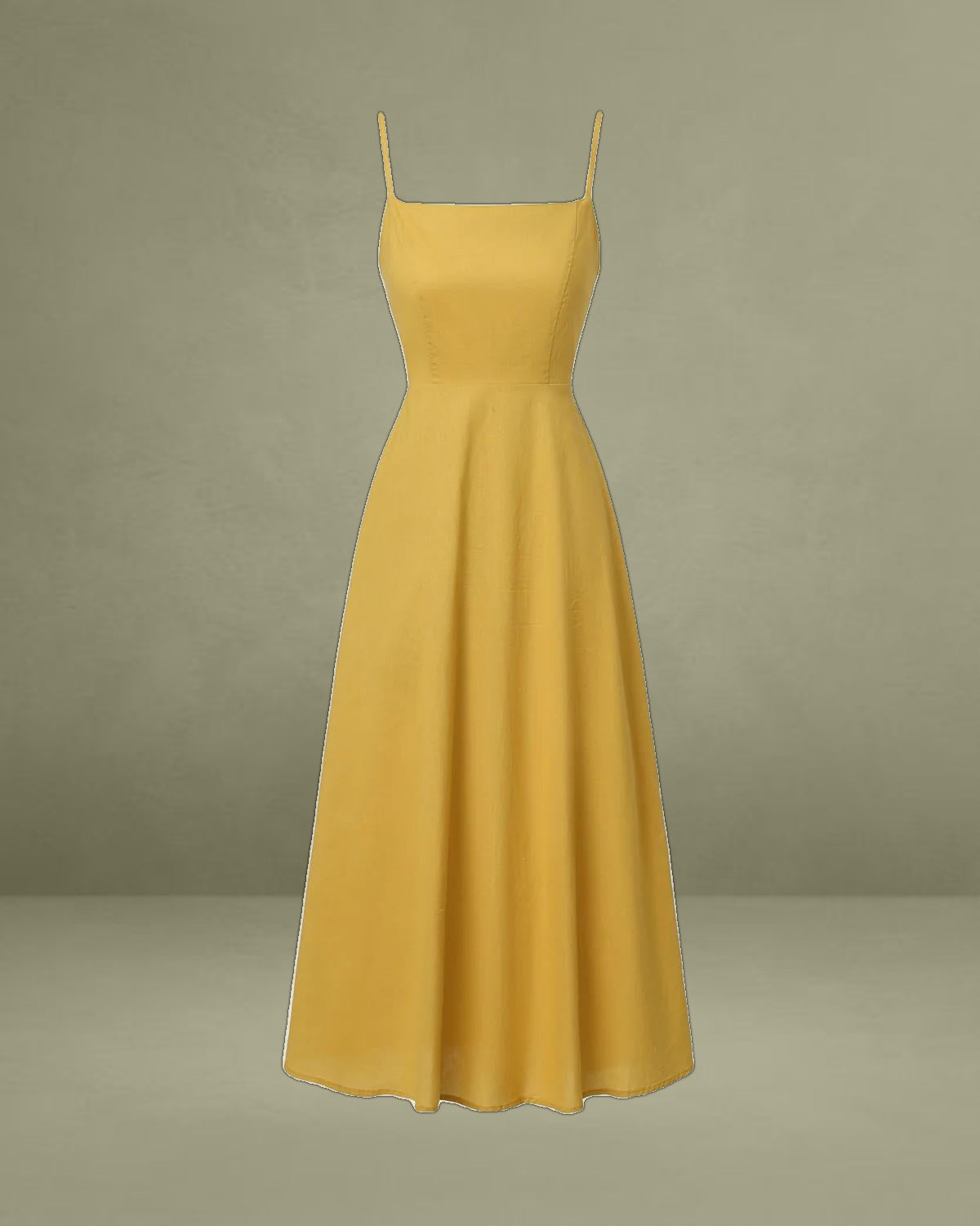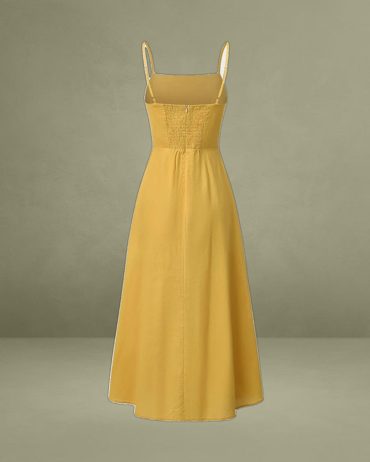 Featuring a flattering square neckline and a stretchy shirred bodice, this midi-length dress hugs in all the right places while keeping things light and effortless. The slim straps and flowy skirt make it a sunny-day staple for picnics, weekend strolls, or beachside brunches.